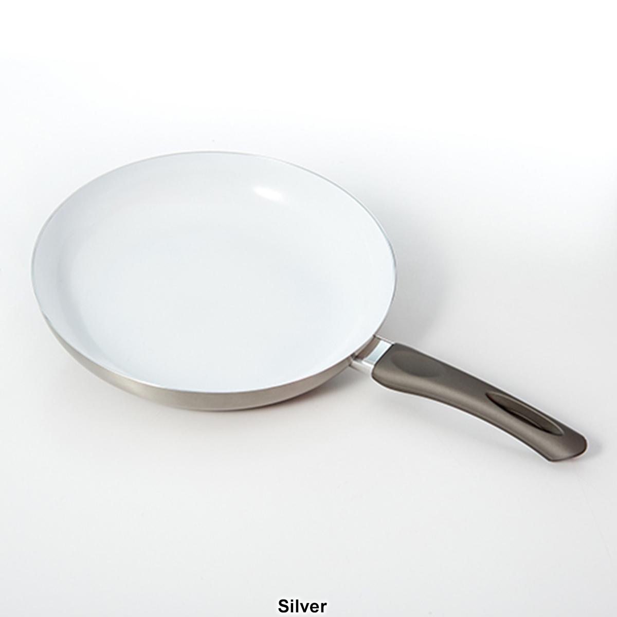 Healthy Living ceramic, non-stick skillet that is PFOA and PTFE free. Lower heat is needed to save energy.