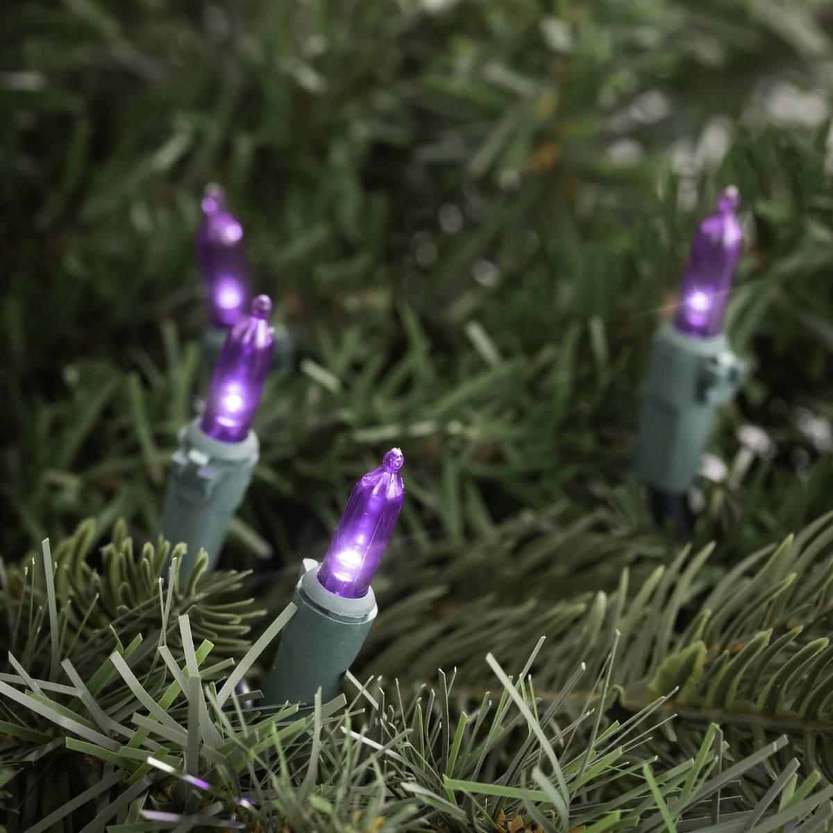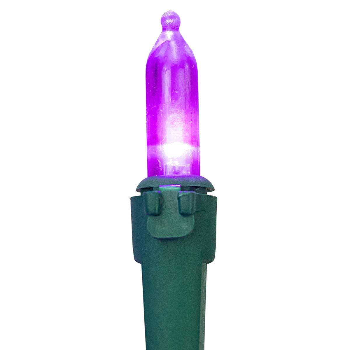 Long associated with royalty and wealth due to its scarcity you can easily add a soothing purple ambiance with this Northlight Seasonal strand of lights. Ideal for Mardi Gras, Easter or adding something extra to everyday decor. Green wire easily blends into topiaries, shrubbery or artificial trees. Featuring 100 purple mini LED bulbs on a green wire that are UL listed for indoor or outdoor use. These LED lights use 90% less energy, are durable non-glass replaceable bulbs and cool to the touch. Lights are equipped with Lamp Lock feature which makes them replaceable, interchangeable and keeps them from falling out. Contains end-to-end connectors which allow you to connect multiple sets together, not to exceed 210 watts. Comes with replacement bulbs and spare fuses, but if one bulb burns out the rest will stay lit.