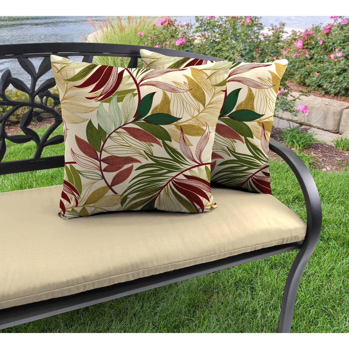 Add a touch of color to your outdoor seating area with this Jordan Manufacturing 18 inch throw pillow. Crafted from a quick-drying, UV- and water-resistant fabric, this outdoor pillow can withstand sun exposure and the elements to last for seasons to come. Stuffed with hypoallergenic polyester fiberfill for an extra cushy and soft experience while relaxing.Recommend bringing inside during inclement weather to prevent cushion damage. Periodic spot cleaning with a mild soap/warm water solution and non-abrasive cloth. Do not use bleach on this item. If the item does become wet, stand on the side, allow water to run out, and completely air dry before putting it away for the season.This item requires oversize delivery. Please refer to the Order Summary in the Shipping step at checkout for delivery charge.