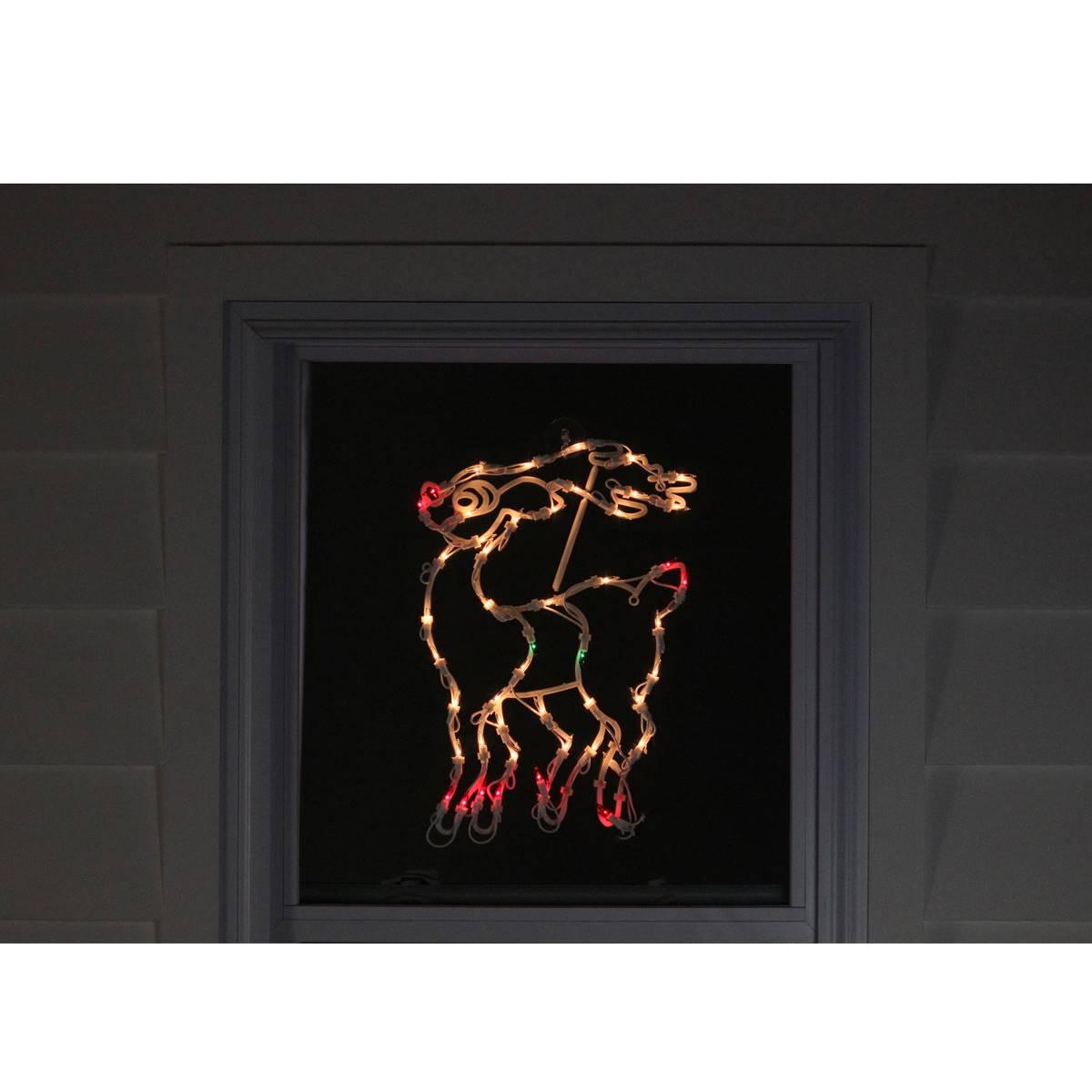 This Northlight Seasonal 18 inch pre-lit and double sided reindeer window silhouette will brighten up your window decor this season! Its light bulbs are UL listed, and if one bulb burns out the rest will stay lit. Replacement bulbs and spare fuses are included and contain 1 plug with end connector. (Not to exceed 210 watts).
