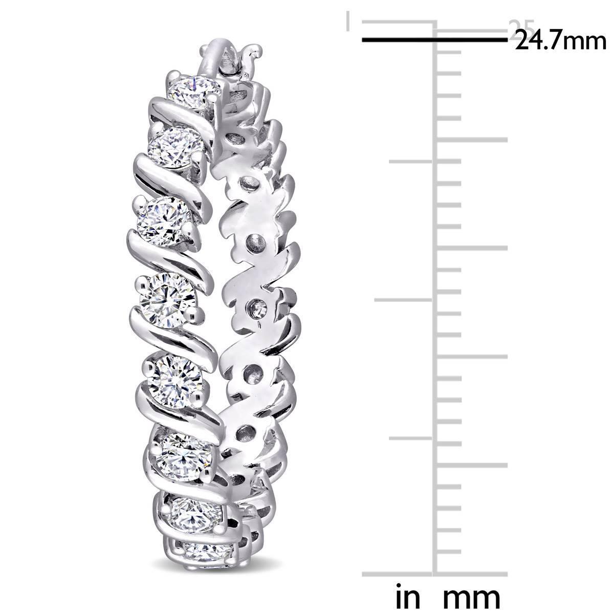 Description These stunning hoop earrings are crafted in sterling silver. They showcase 20 round-cut, prong-set dazzling created white moissanite gemstones. Enhanced with a high...