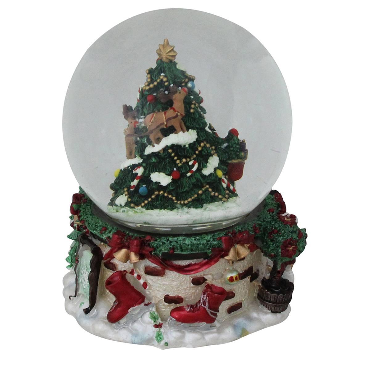 This Northlight Seasonal 6.5-inch Christmas tree and Santa Claus musical snow globe would be the perfect touch to your holiday decor or to give a gift. The globe features a large decorated Christmas tree with Santa Claus and his reindeer in front. The 3-D base is hand sculpted and painted showing all the best things for a Christmas celebration. When wound plays "We Wish You A Merry Christmas" and snow blows around the globe.