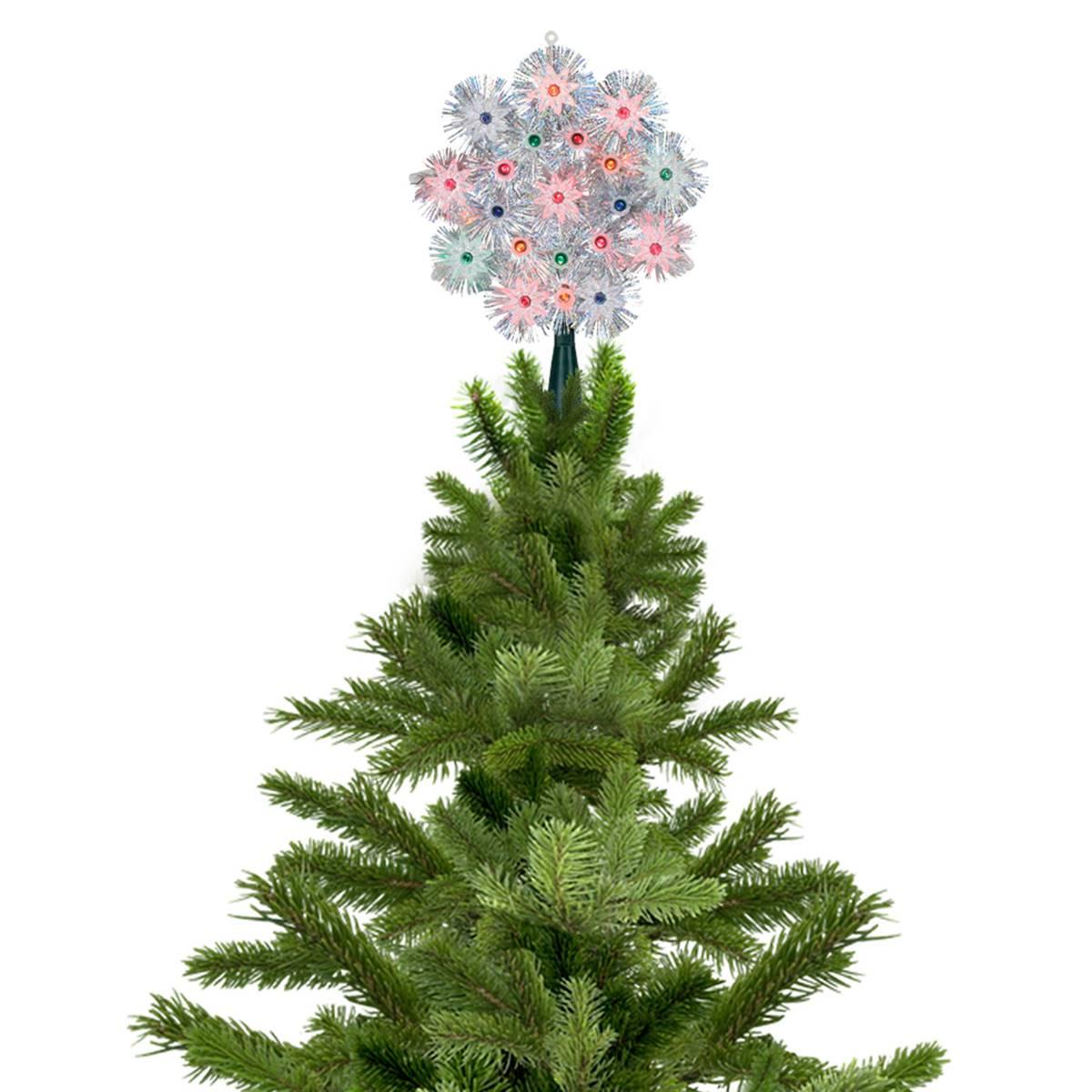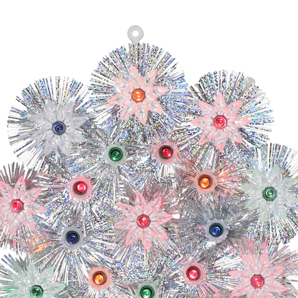 Description This Northlight Seasonal Retro Starburst Christmas Tree Topper screams nostalgia with its silver tinsel border. Multi-colored lights offer a colorful soft glow with a...