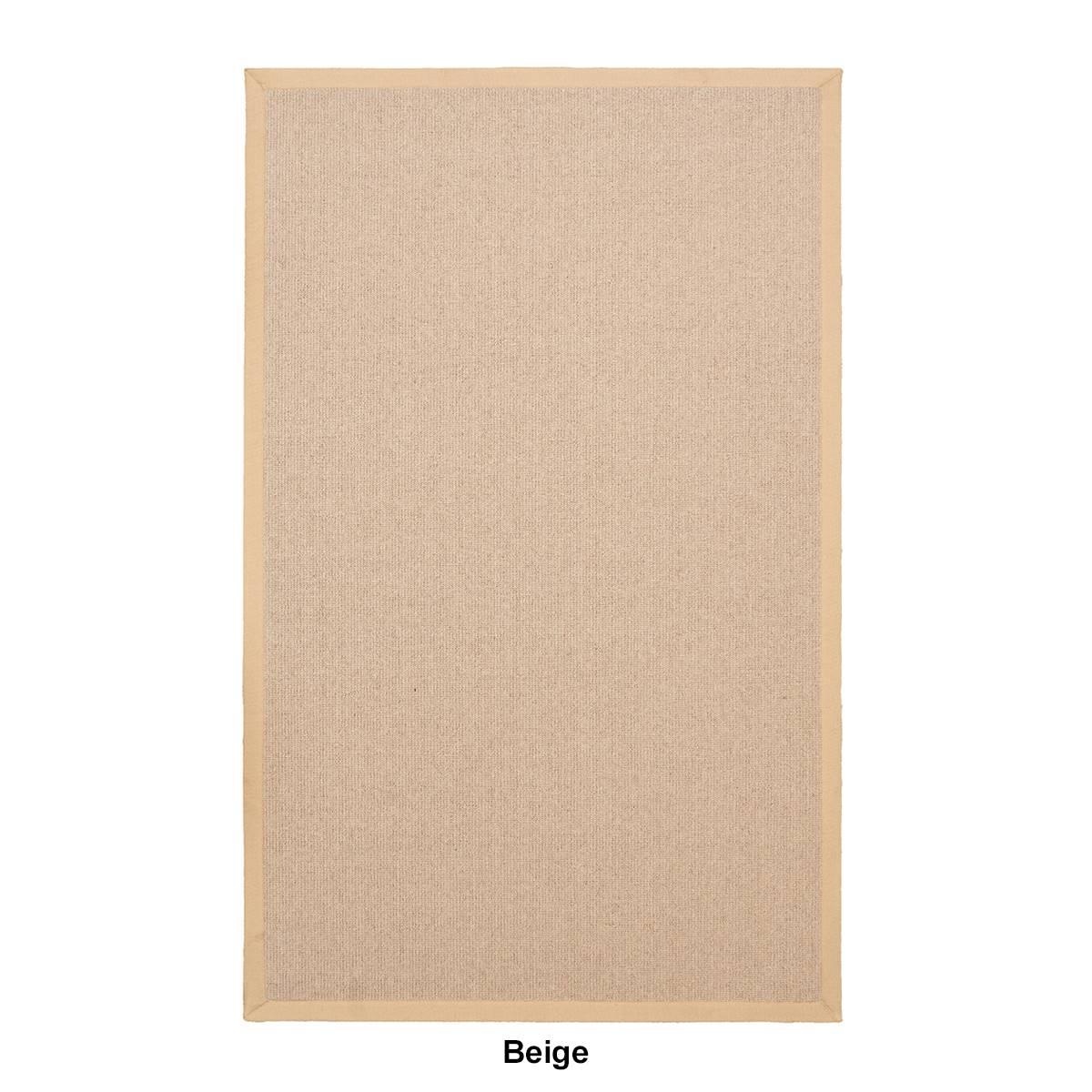 The Linon Athena area rug offers a wide variety of options with the look of natural grass and durability of wool. This rug is tufted and bound in the USA with a solid border created a neutral look that will go with any room decor.