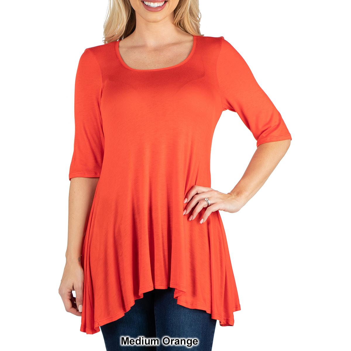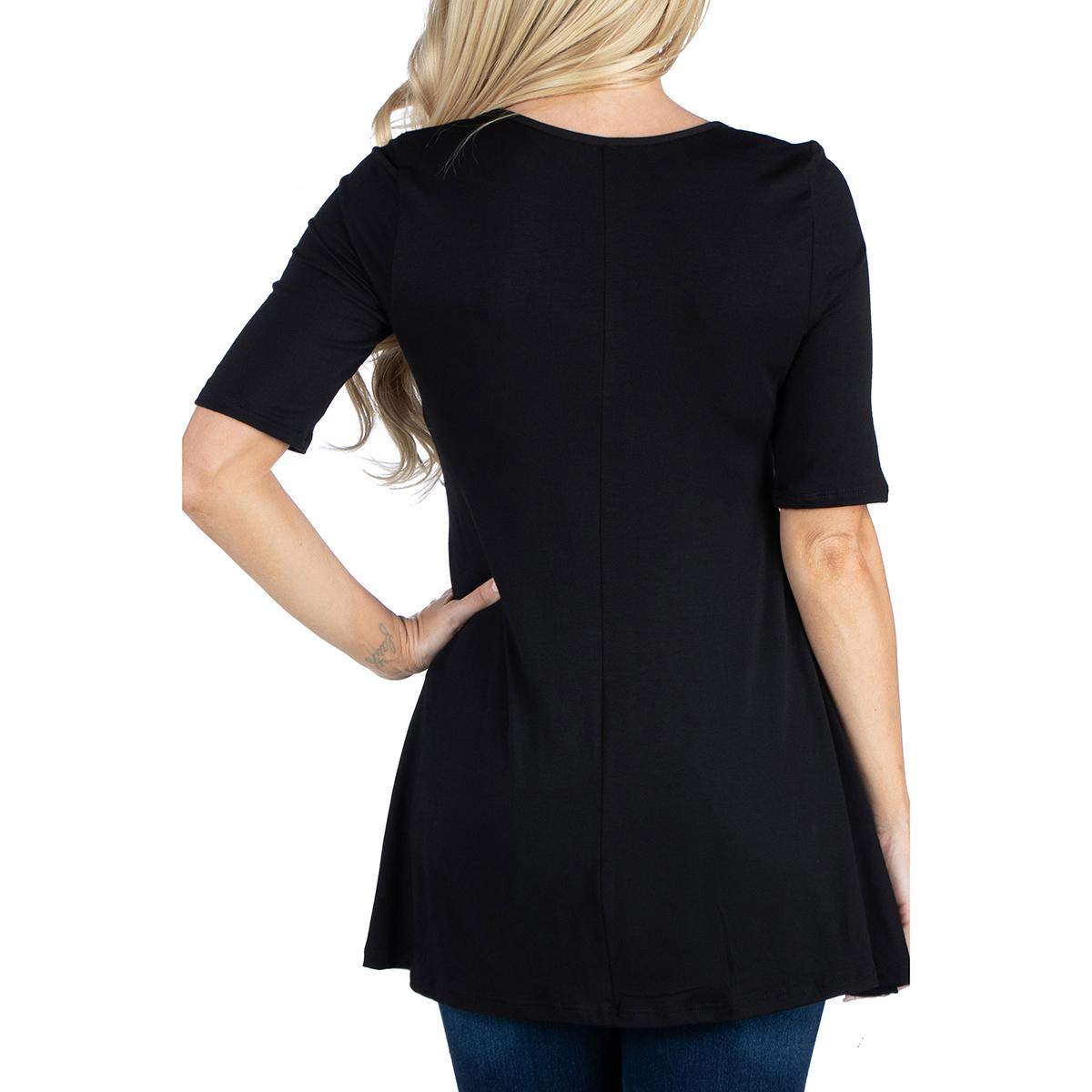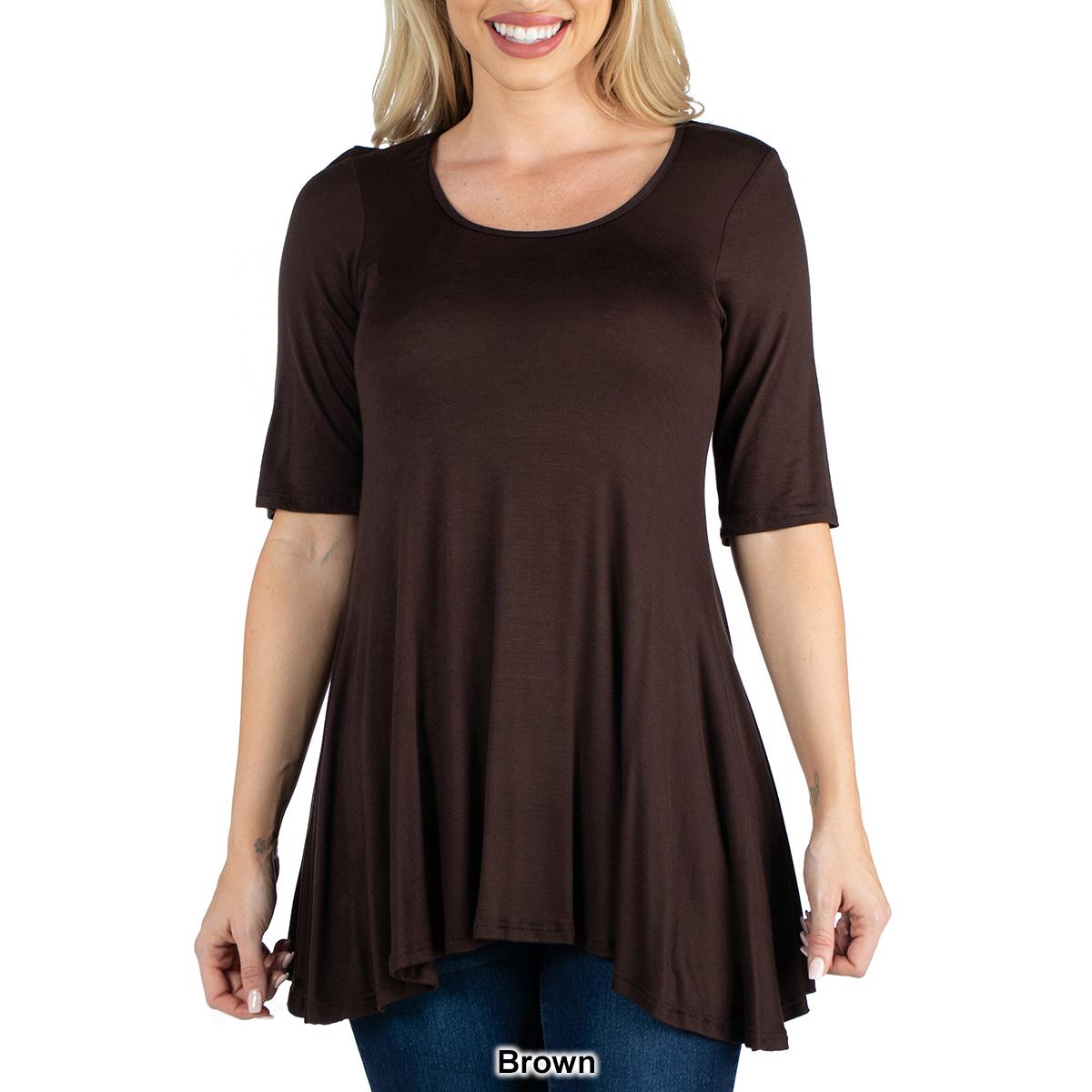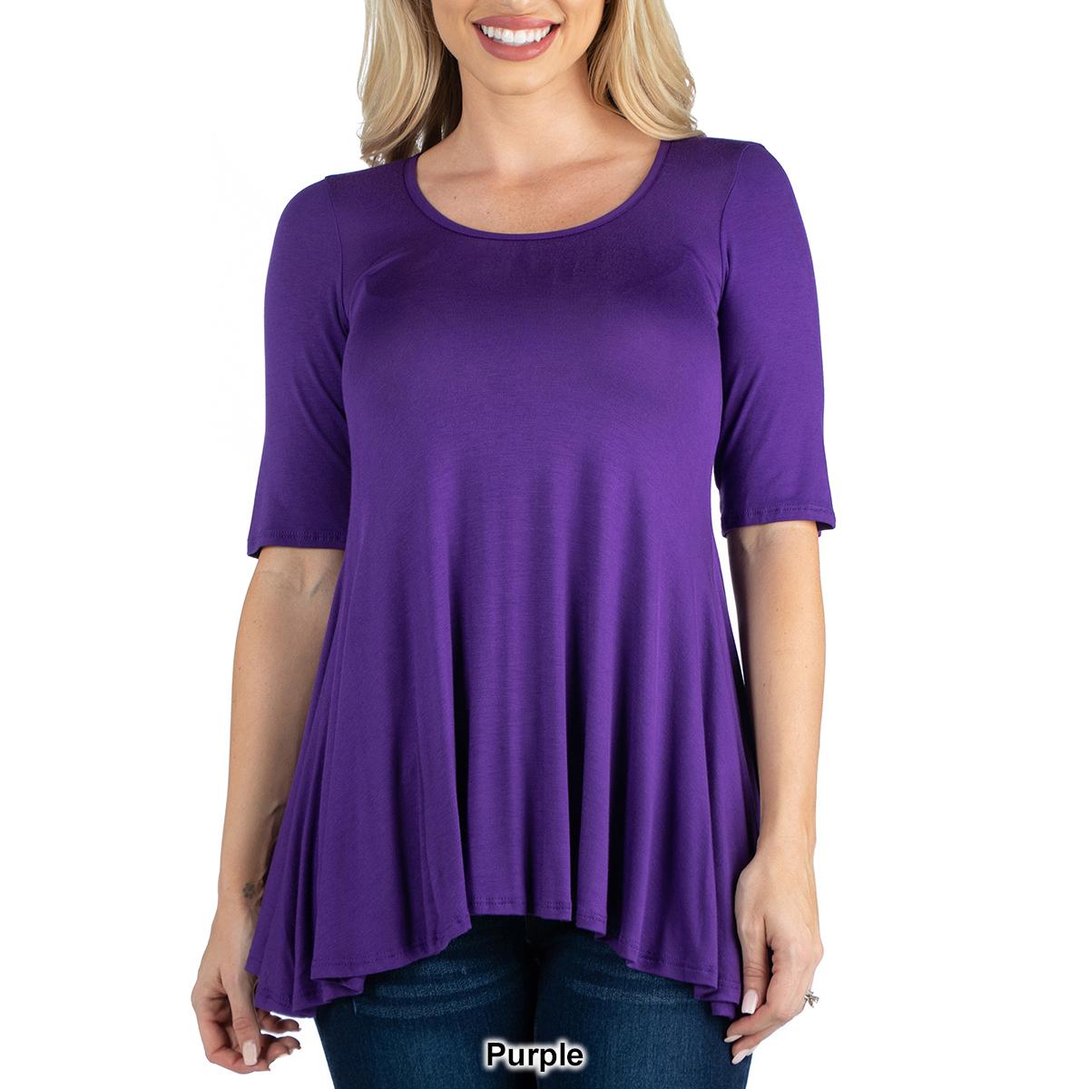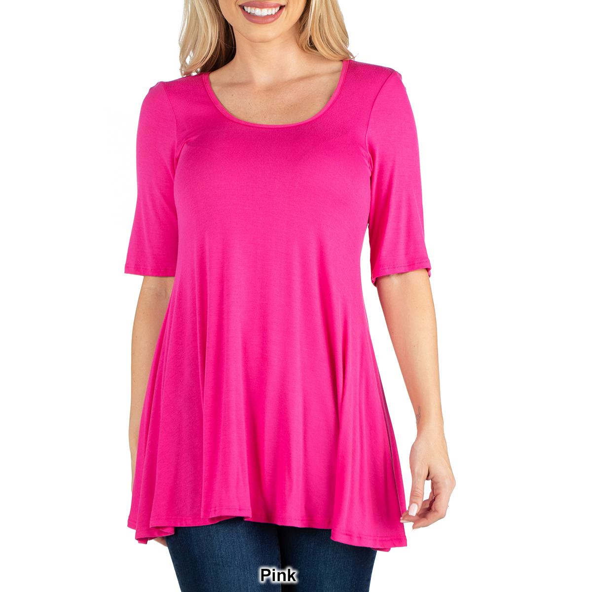 Description This Womens 24/7 Comfort Apparel stylish solid colored tunic features a figure-flattering design. The elbow length sleeves, round neckline, and swing top shape make...