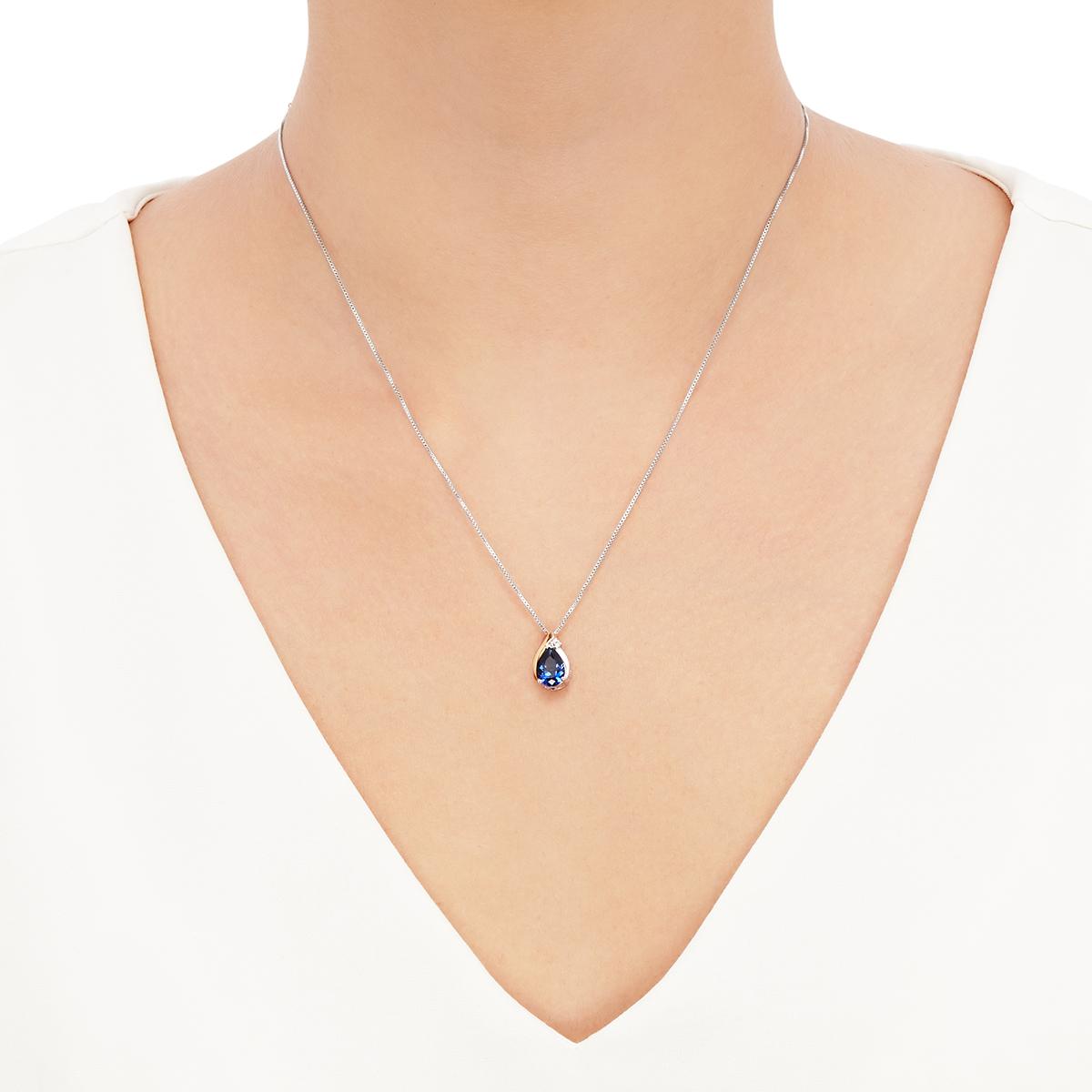 Gemstone Classics™ Sterling Silver pear-shape lab-created sapphire and white is the birthstone for September. If your birthday is in September and you want to wear a birthstone pendant, then accessorize yourself with this beautiful Pear Lab-Created Sapphire pendant. This Lab-Created Sapphire pendant is a classic style, with an eye-catching yellow gold accent.