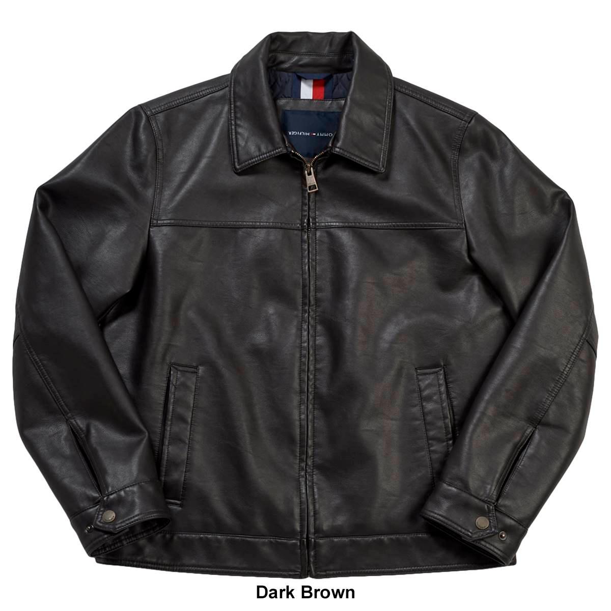 You´ll love the way you look while staying warm this season in this Mens Tommy Hilfiger faux leather classic jacket. This jacket features two side pockets, a zip interior pocket, a full zip front closure, and a premium finish that is water repellent during inclement weather.