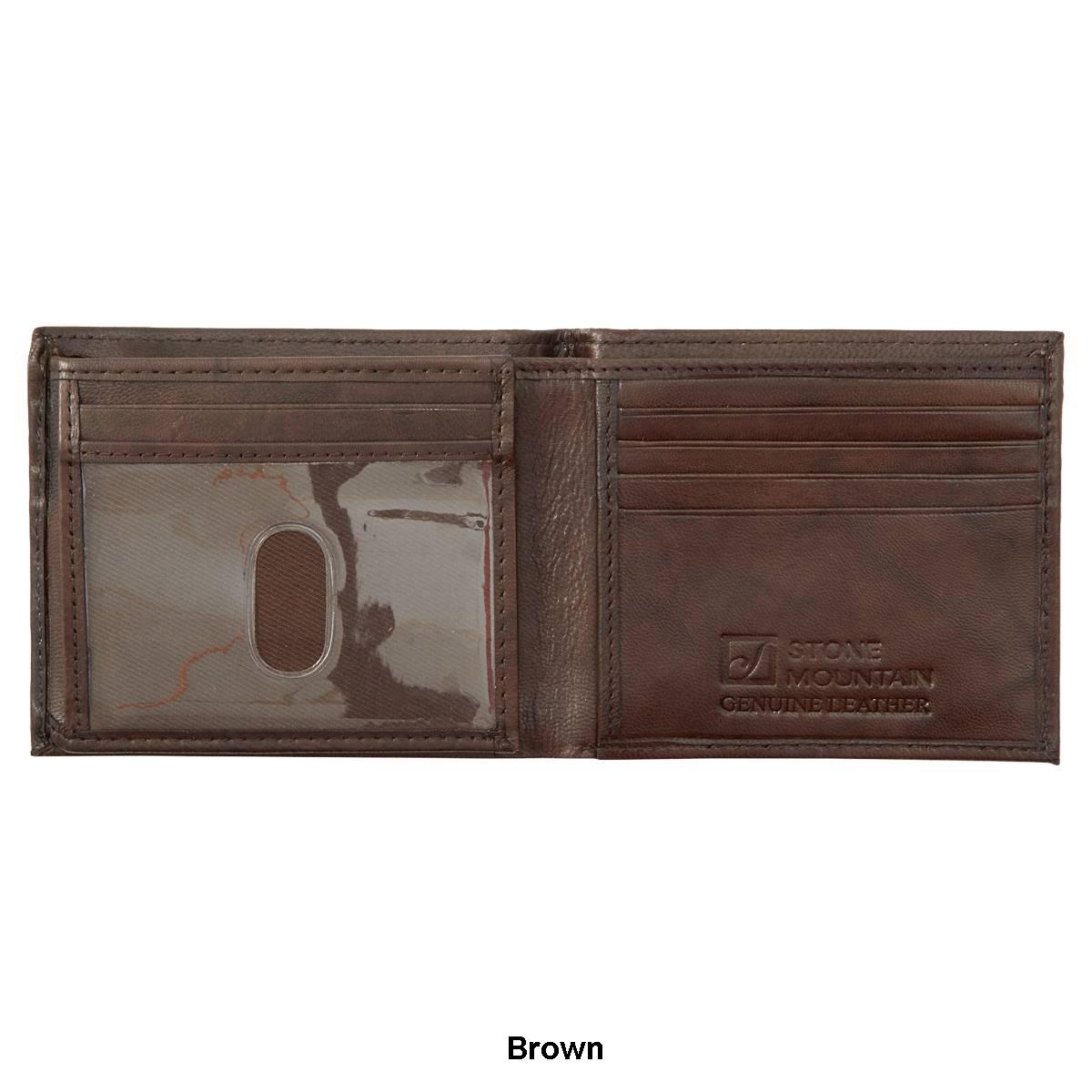 This Mens Stone Mountain crunch antique traveler wallet features an RFID security protection, an interior zipper pocket, and multiple card slots.