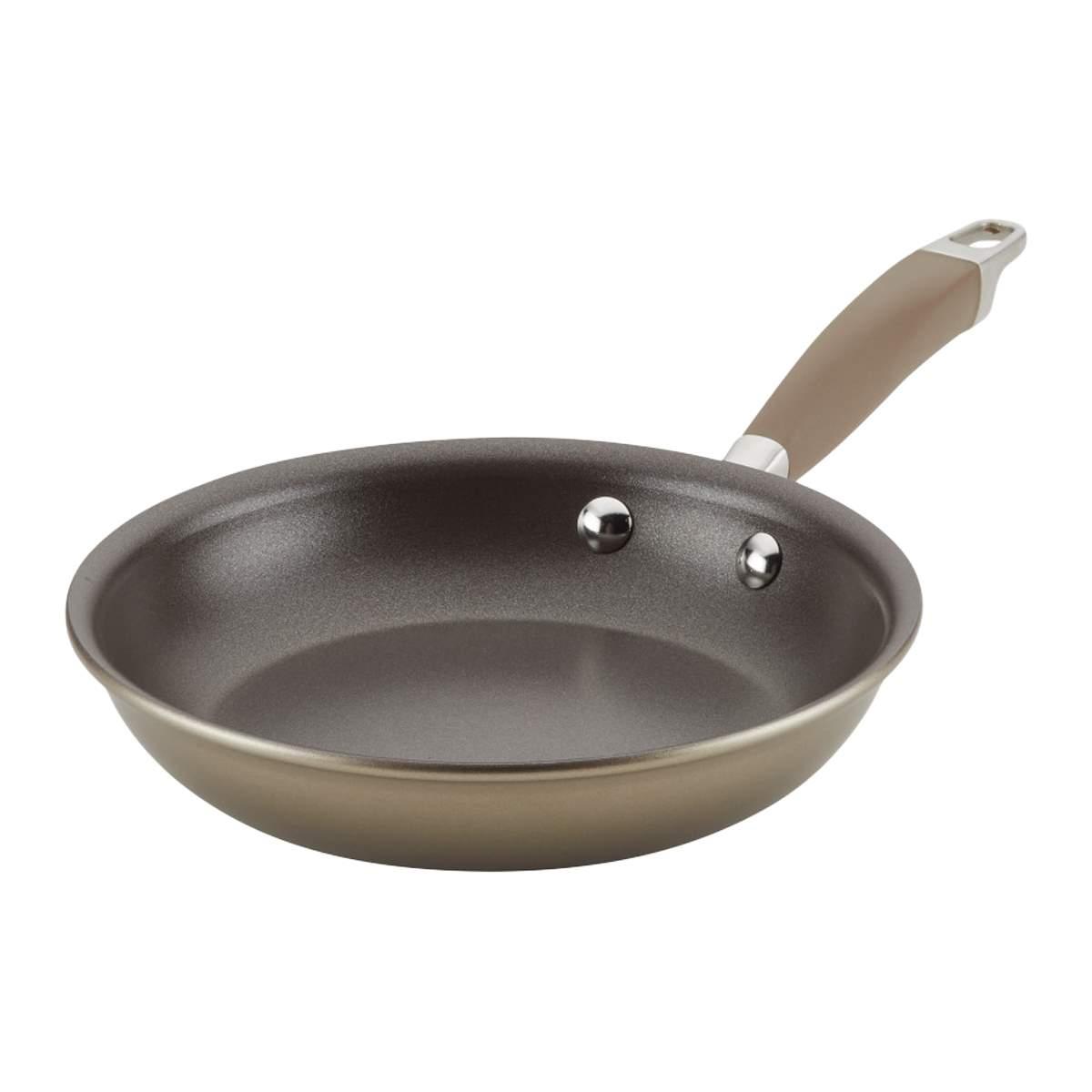 Designed for everyday cooking, this Anolon® advanced bronze 8.5 inch open skillet is constructed from even-heating hard-anodized aluminum that’s twice as strong as stainless steel for enhanced durability. From seared scallops to a cheddar and tomato frittata, the sapphire-reinforced infinity slide´s nonstick provides effortless food release that lasts 16X longer than traditional nonstick and 80X longer than typical ceramic cookware. Oven safe to 400°F, Anolon advanced home is engineered for consistently high-quality thermal performance to deliver fast, uniform heating and eliminate the hot spots that can burn foods.This product contains (Este producto contiene) Fluoropolymer, PTFE, FEP, PFA (PFAS). For more information on PFAS or chemicals in this product, visit (Para obtener mas informacion sobre PFAS o productos quimicos en este producto, visite) https://anolon.com/pages/product-disclosures.