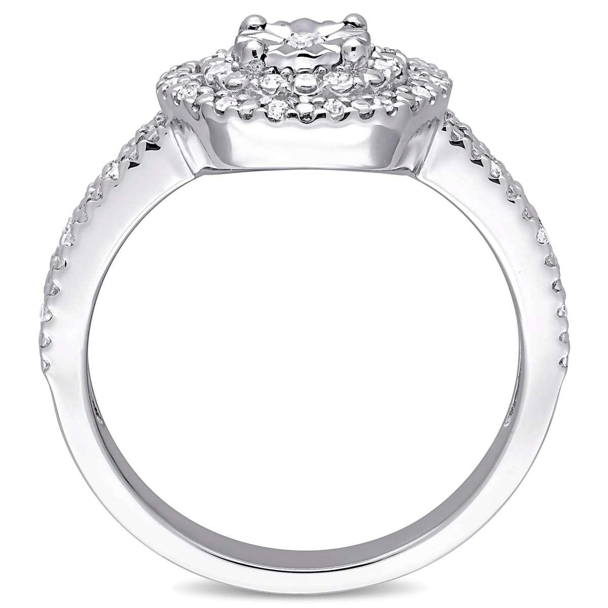 Description This Diamond Classics™ sterling silver 1/5ctw. diamond ring showcases 35 round cut and prong set buttercup diamonds in a stunning double halo. Its two row design is...