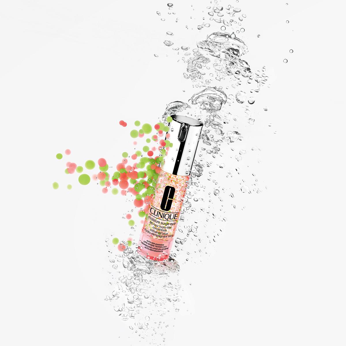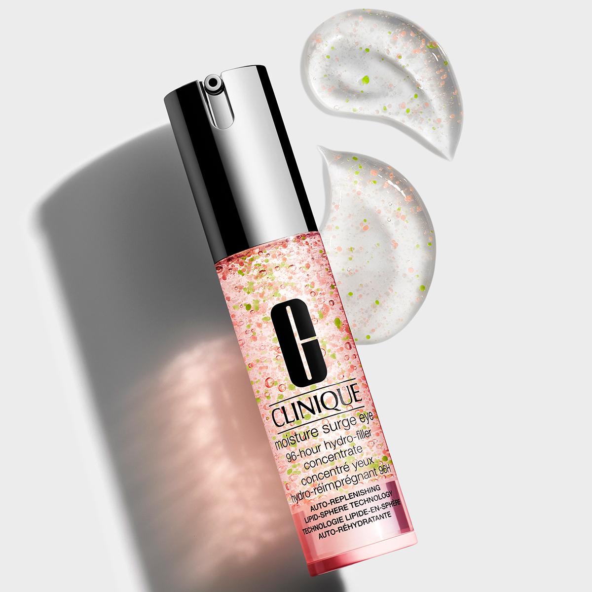 • Moisture Surge Eye™ 96-Hour Hydro-Filler Concentrate is an ultralight, cushiony water-gel that delivers 96 hours of intense, crease-plumping hydration.