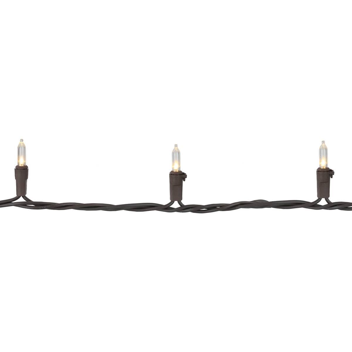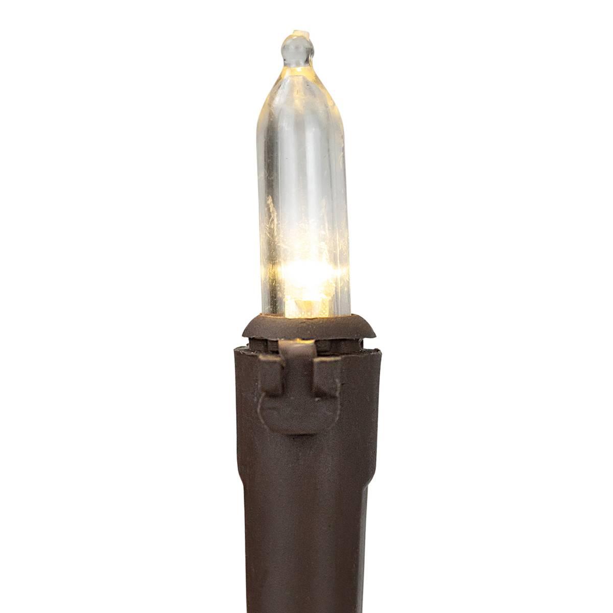 Add some light to your life with these beautiful Northlight Seasonal white Christmas lights. Their bright glow will surely bring some sparkle to your Christmas tree. These universal lights can also be used at a wedding, receptions or other holidays. Featuring 100 clear white mini LED bulbs on a brown wire that are UL listed for indoor or outdoor use. These LED lights use 90% less energy, are durable non-glass replaceable bulbs and cool to the touch. Lights are equipped with Lamp Lock feature which makes them replaceable, interchangeable and keeps them from falling out. Contains end-to-end connectors which allow you to connect up to 3 sets together, not to exceed 210 watts. Comes with replacement bulbs and spare fuses, but if one bulb burns out the rest will stay lit.