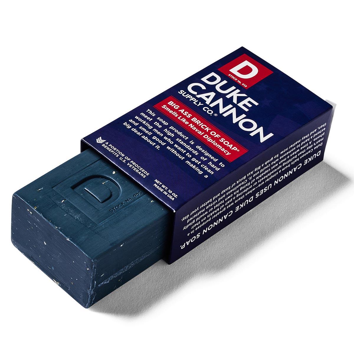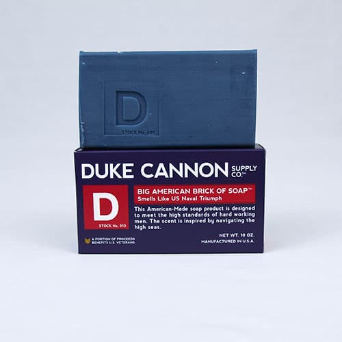 While other blue soaps are named "Ocean Force" or "Summer Mist," our Duke Cannon blue soap is the only one big enough to be named "Naval Triumph". With a package sporting the official colors of the U.S. Navy, this superior grade product weighs in at a hefty 10 oz. and has steel cut grains for maximum grip.