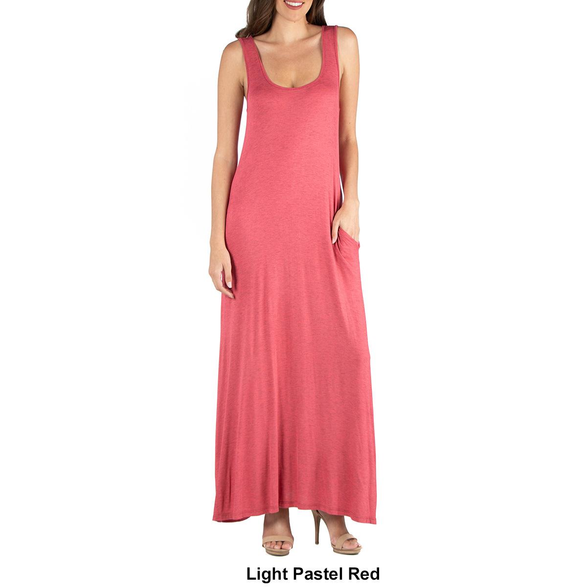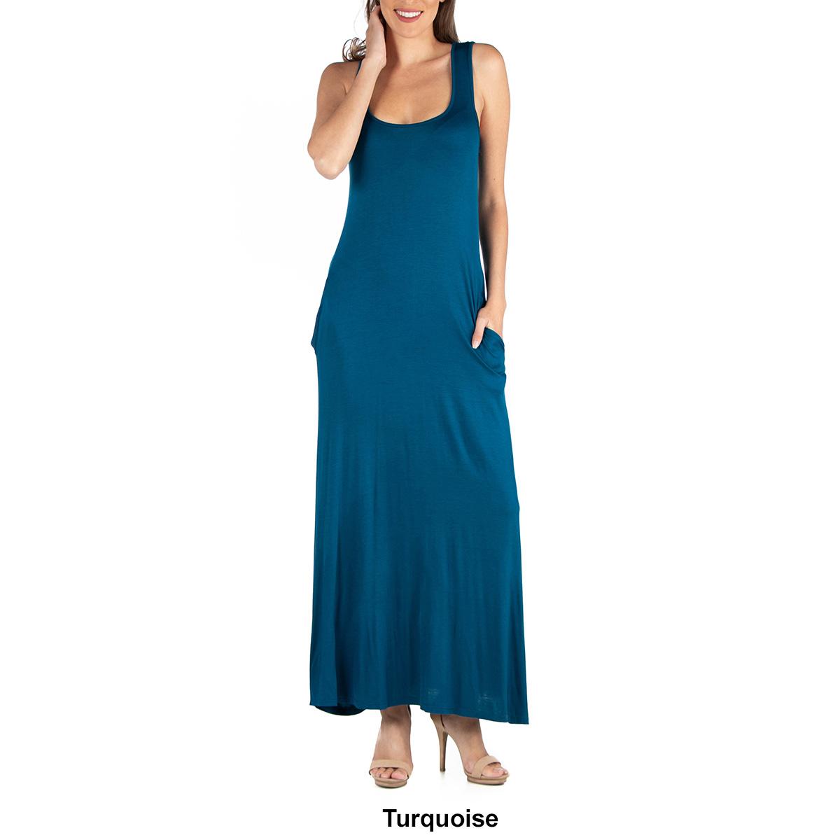 Chic, glamorous and comfortable, this Womens 24/7 Comfort Apparel sleeveless maxi dress features straps and a scoop neckline. Easy to dress up or down, this dress features a slim fit that caters to all figures. A mix of practicality and beauty, this maxi dress with pockets will be a hit for any occasion.