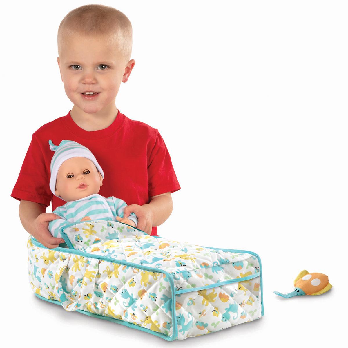 Description This adorable portable Melissa & Doug® Mine to Love cloth bassinet gives kids’ favorite dolls and stuffed animals a soft and cozy place to snuggle at home or on...