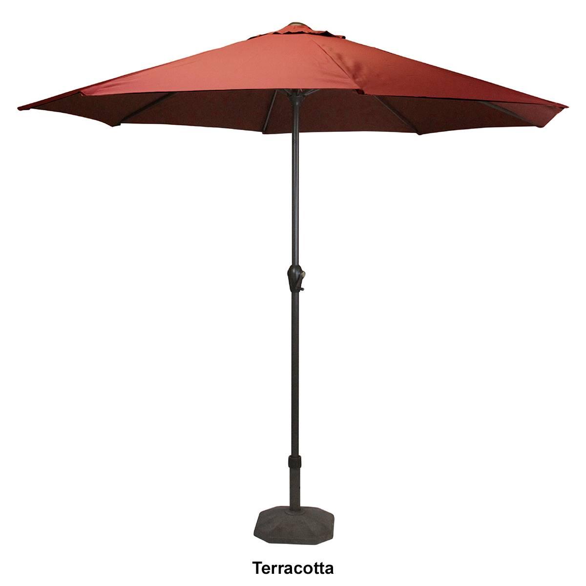 Stay shaded and cool this summer with our moderately sized Northlight Seasonal 9 foot patio market umbrella with hand crank and tilt. Ideal for covering a 48 inch or four person dining set. Features a sturdy powder-coated aluminum frame with steel rib built to last a lifetime. The crank opening and push-button tilt mechanism allows for ease of use.