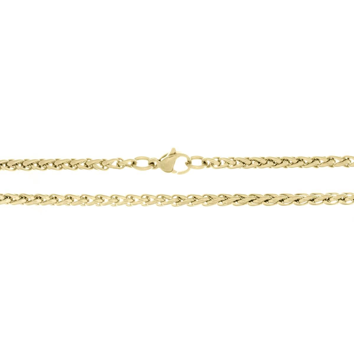 Description This Mens Lynx stainless steel gold-tone wheat chain necklace is perfect for any special man in your life looking to add a minimalist chain to their wardrobe. Crafted...