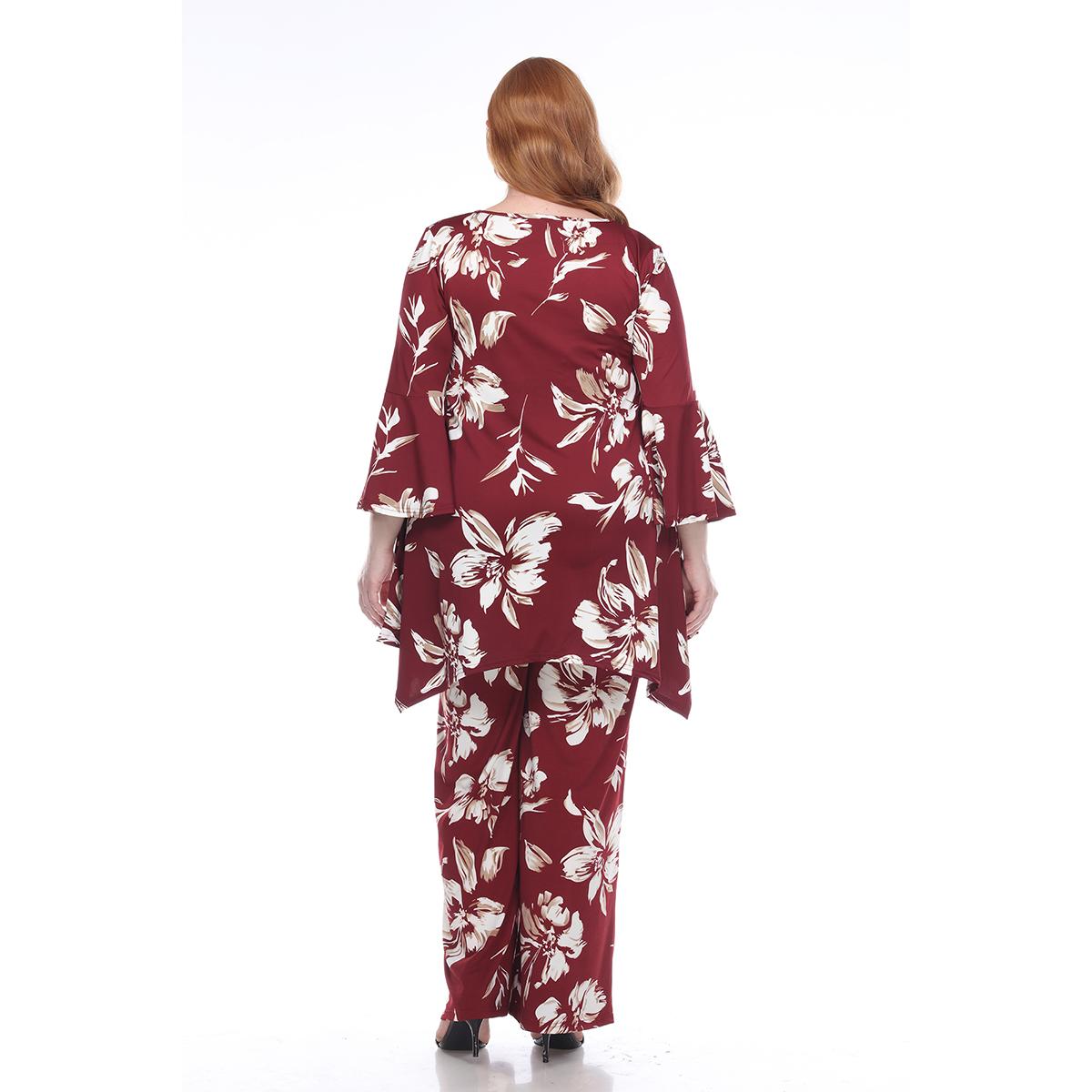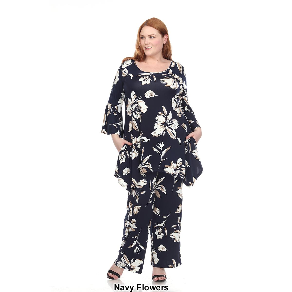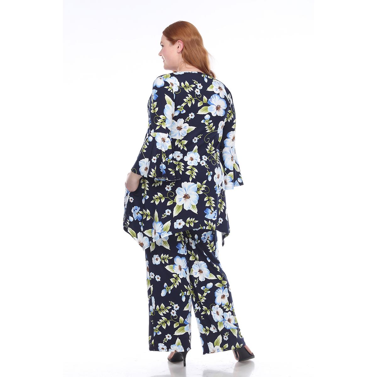 Description For all of the print lovers, this Plus Size White Mark palazzo floral pants and floral top are made out of premium quality stretchy knit for the most flattering fit....