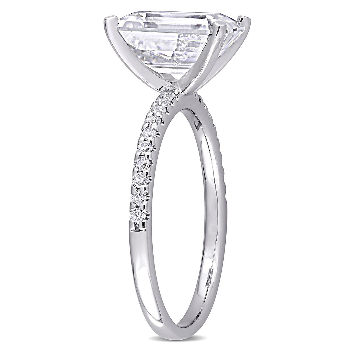 Description This opulent Diamond Classics™ 10kt. white gold emerald-cut moissanite engagement ring is perfect for that special person in your life. Crafted with lustrous 10kt....
