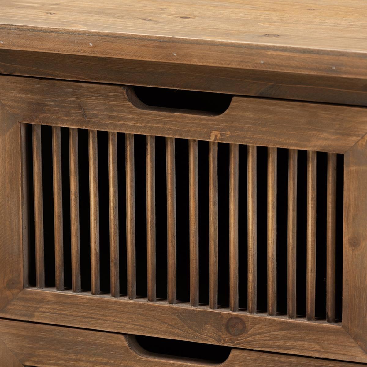 Rustic tones and clean lines make the Baxton Studio Clement nightstand a handsome addition to any bedroom. This sturdy wood nightstand displays a medium oak finish that highlights the wood grains for a cozy, rustic look. Two drawers provide ample space to store all the bedside essentials. Spindle detailing lends visual interest, while cut-out drawer handles enhance the nightstand’s natural appeal.