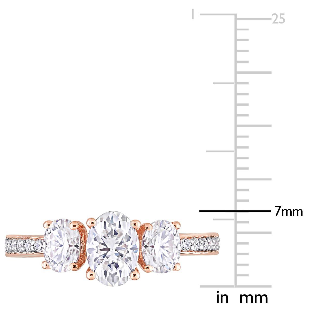 Description This elegant Diamond Classics™ 10kt. rose gold oval moissanite three-stone engagement ring is crafted with elegance. This classic wedding ring features three...