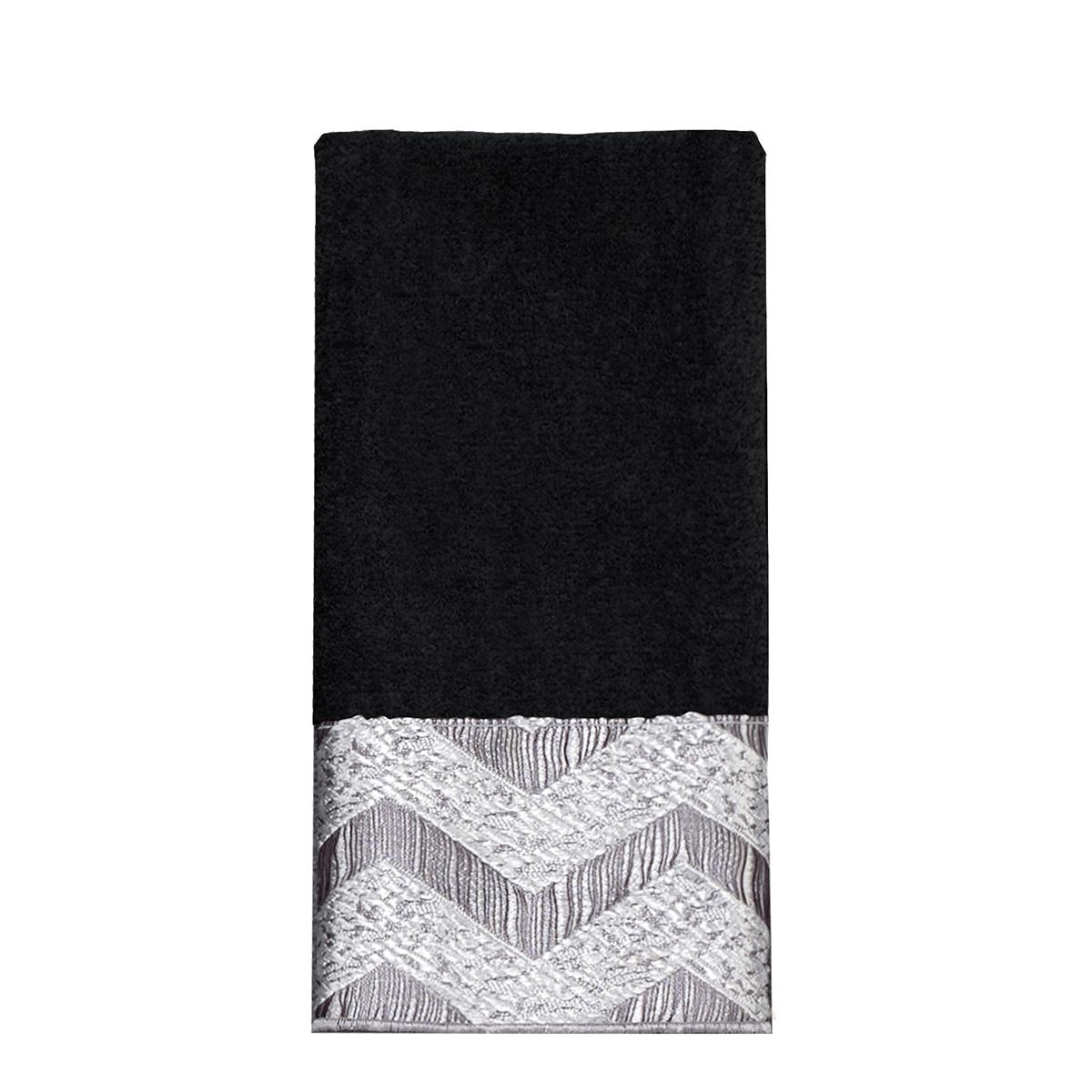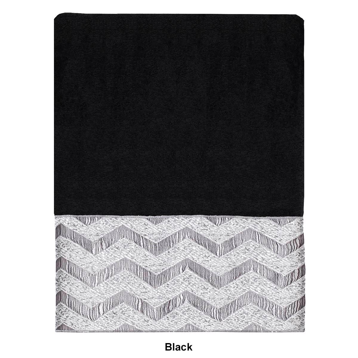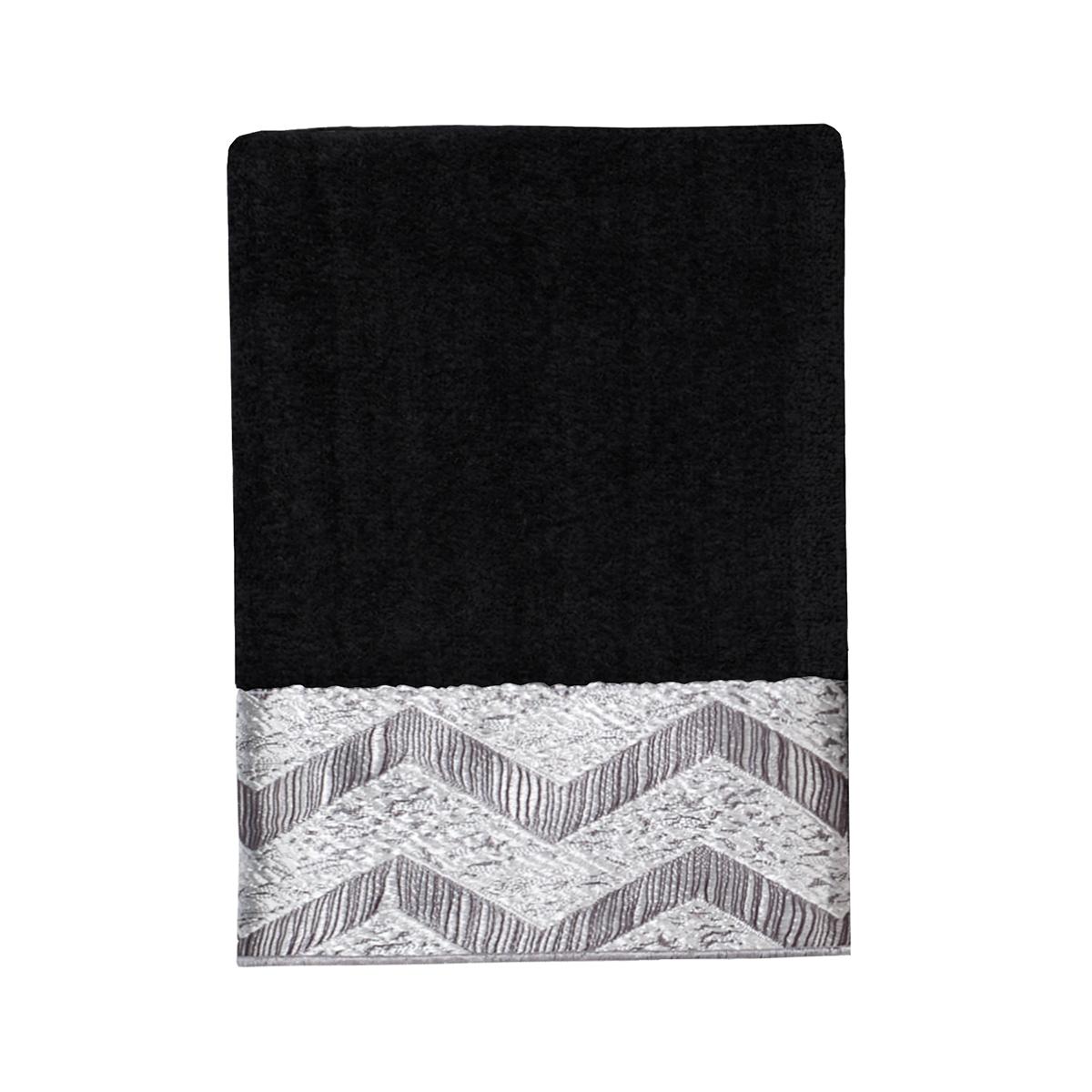 This Avanti chevron galaxy bath towel collection features a beautifully woven jacquard chevron pattern border in complementary shades of silvers and greys on a 100% cotton black towel. The prefect way to add a contemporary feel to any bathroom.