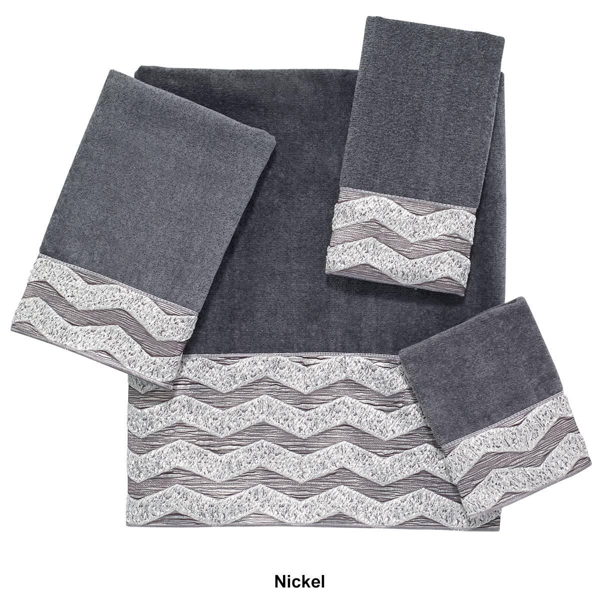 Description This Avanti chevron galaxy bath towel collection features a beautifully woven jacquard chevron pattern border in complementary shades of silvers and greys on a 100%...