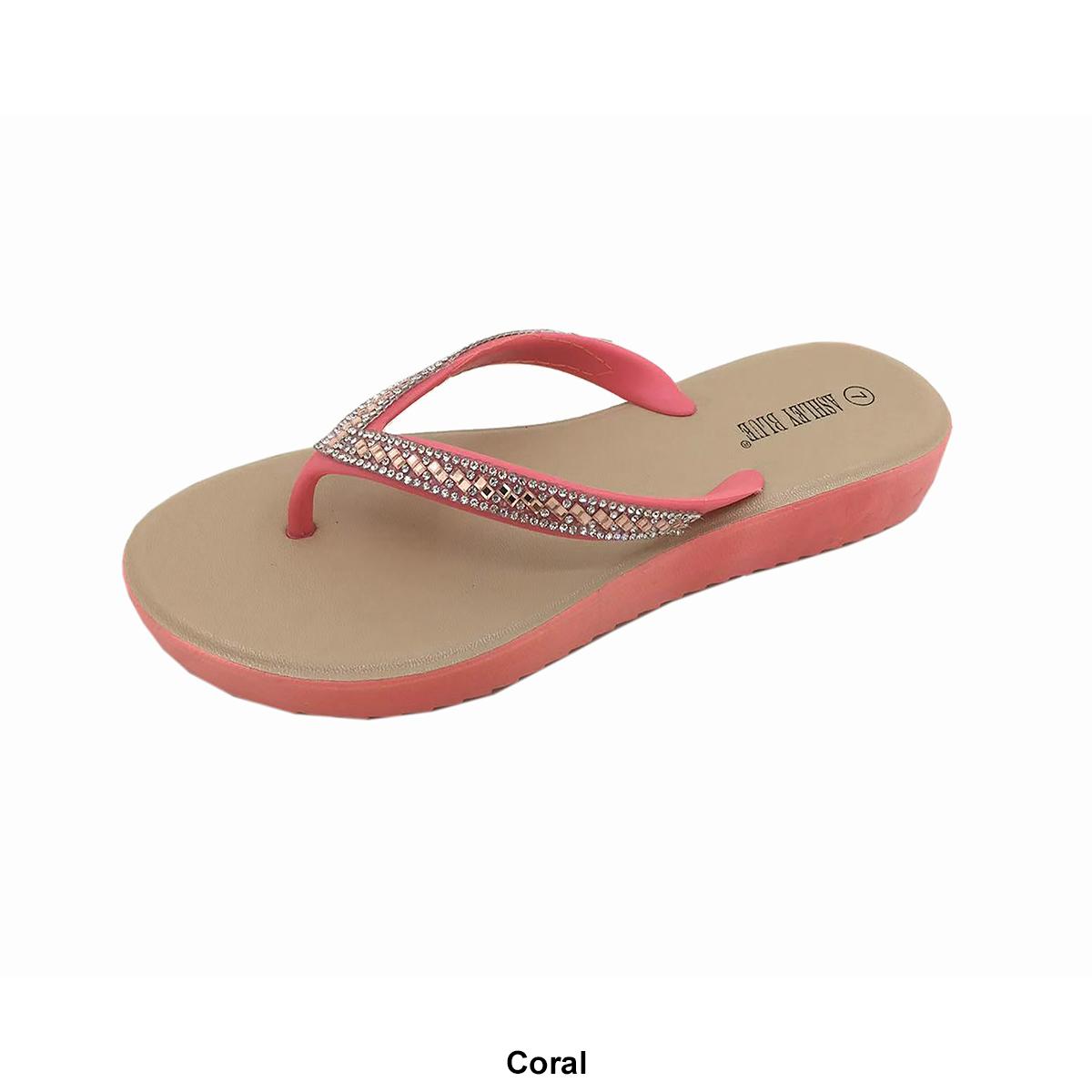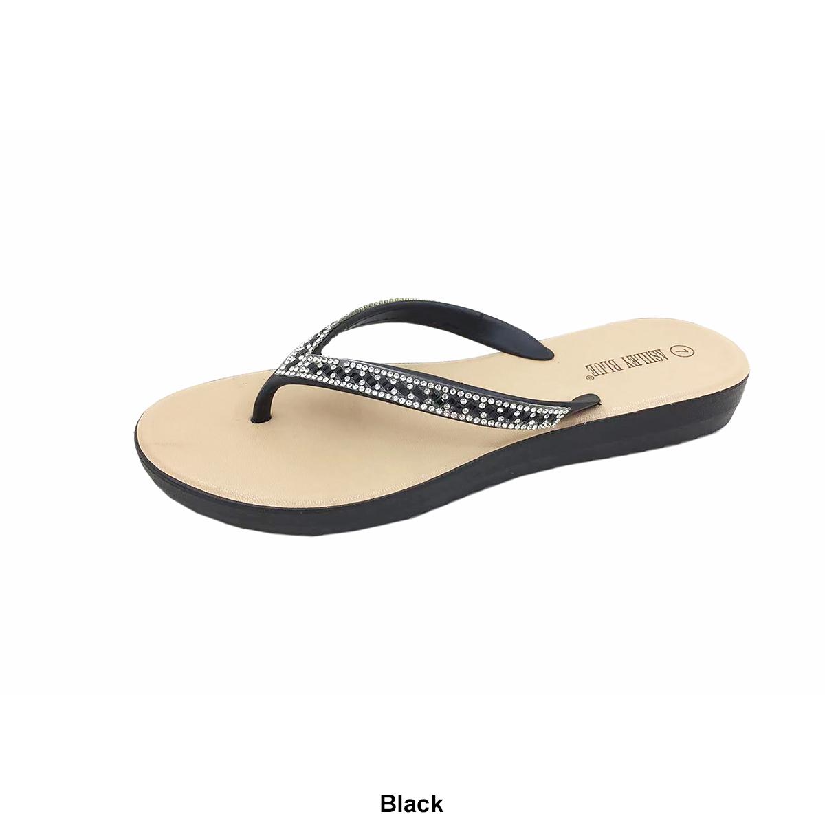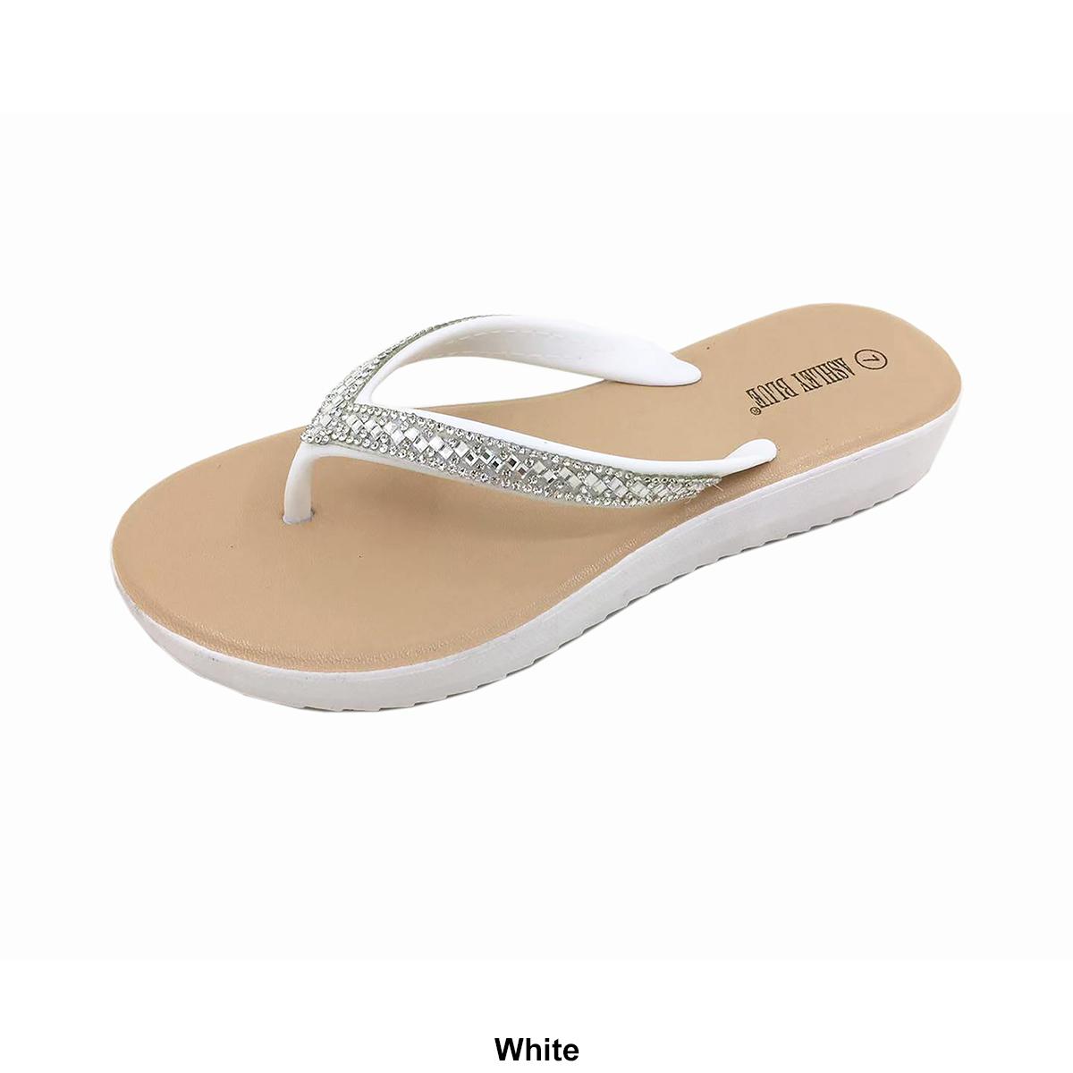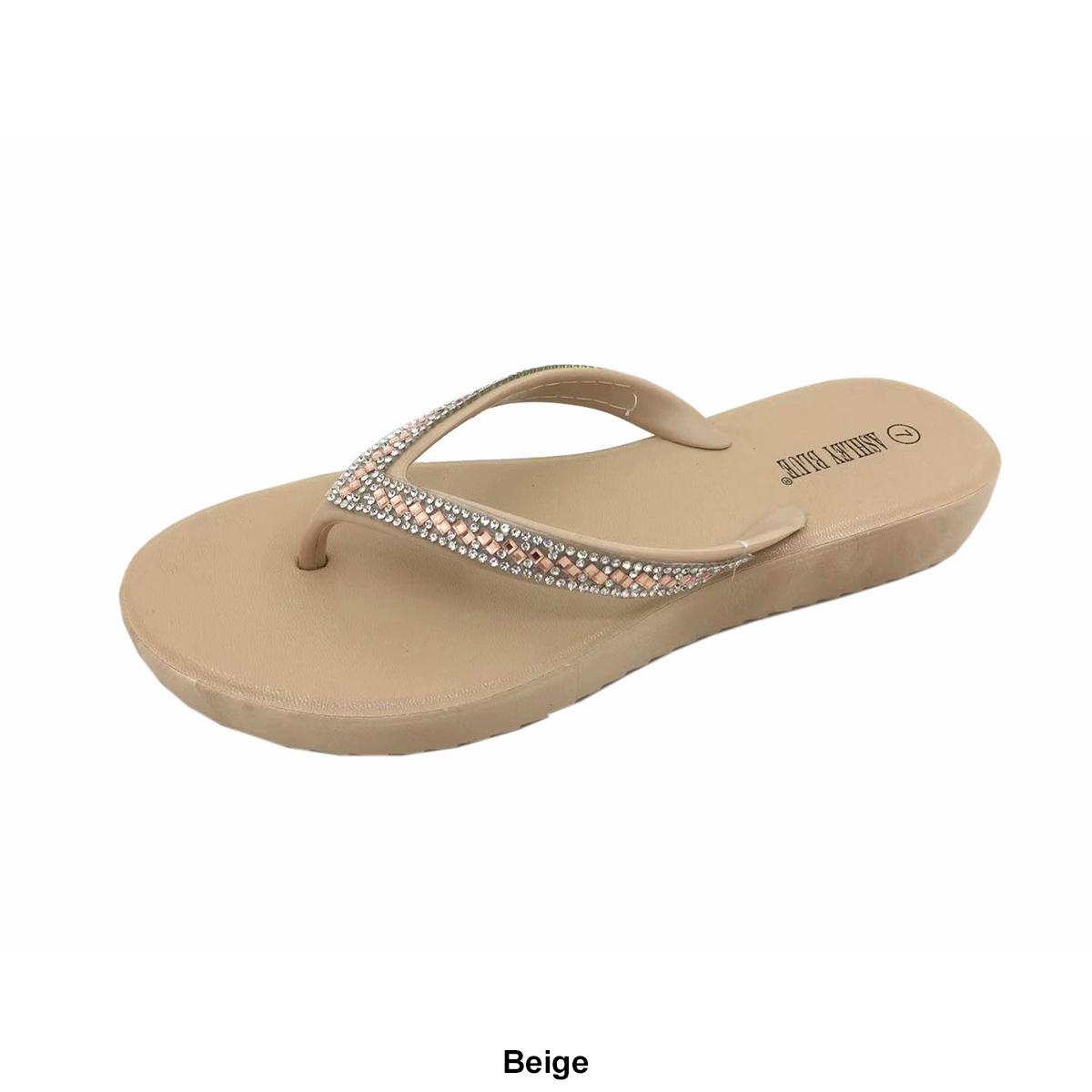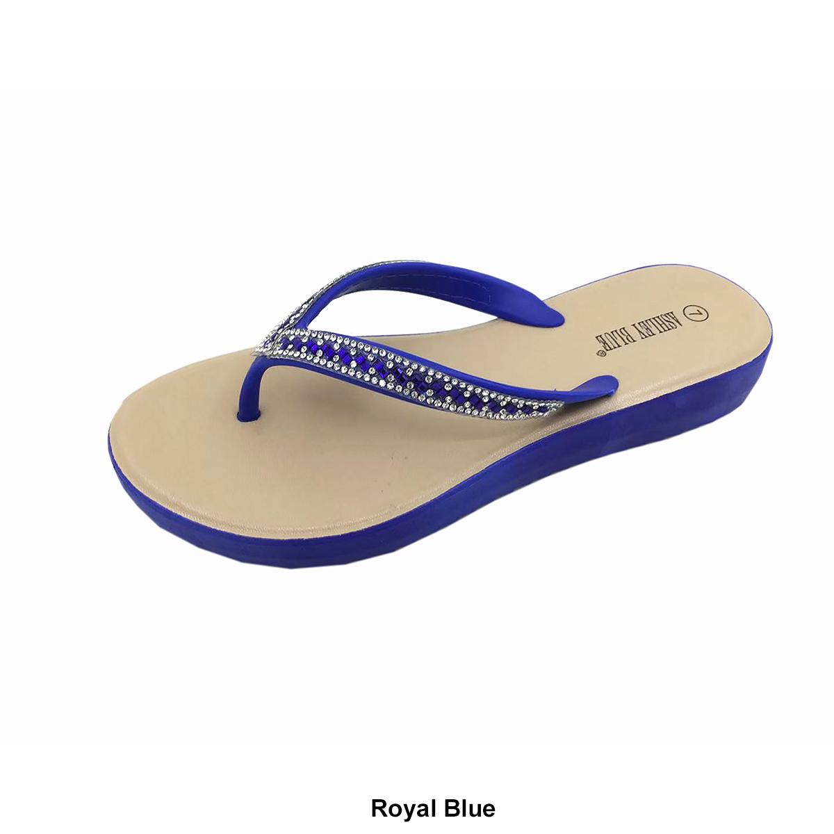 Womens Ashley Blue Crystal Beaded Jellies Flip Flops