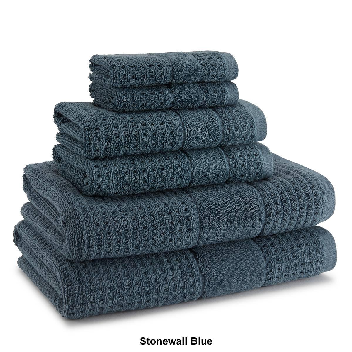 The Cassadecor Checkered 6 piece towel collection is a must have Turkish cotton bath staple. Crafted in Turkey, this 6pc towel set features a plush, waffle-like texture that is soft to the touch. At 650 GSM, this mid-weight towel is an absolute must for your everyday bathing needs. Each set contains 2 bath towels, 2 hand towels, and 2 washcloths, for a total of 6 pieces. Machine wash in cold water. Tumble dry in low to medium heat. Do not bleach. Both Bath and Hand towels feature a convenient hanger loop for an easy hanging option.