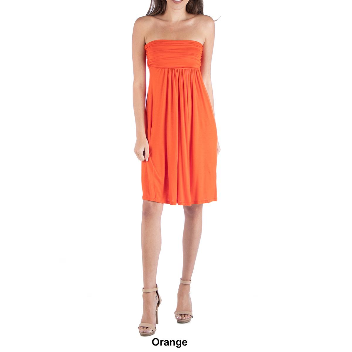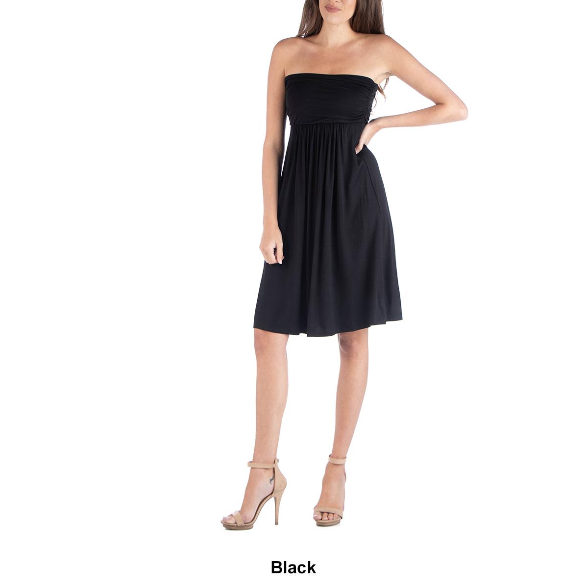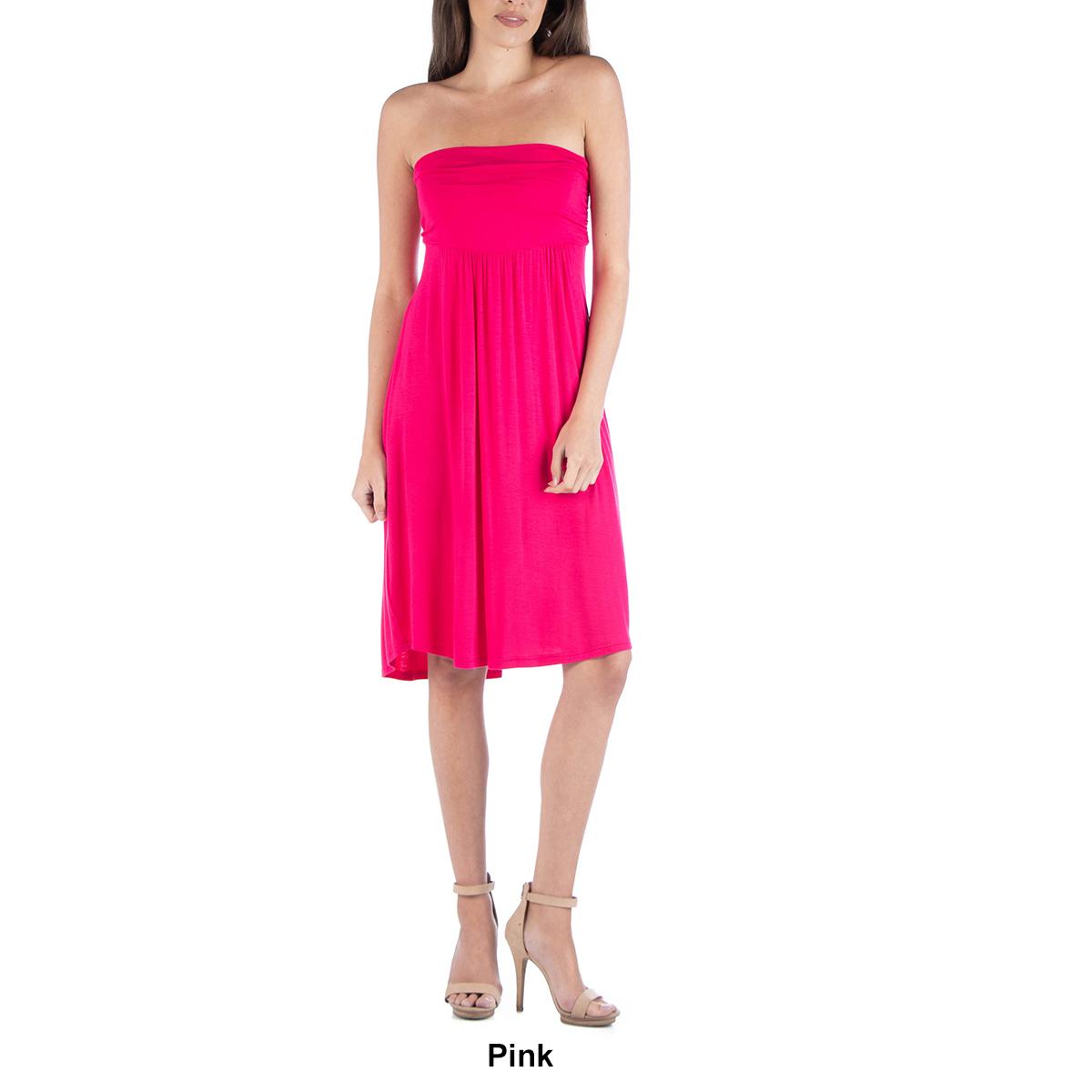 Description This fun and flirty Womens 24/7 Comfort Apparel knee-length bandeau top a-line dress can be dressed up or down for any occasion. Perfect for the warmer months, this...