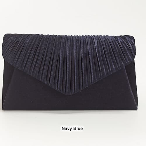This elegant Jessica McClintock pleated envelope clutch has a pleated flap and a magnetic snap closure. The corded shoulder strap has a 22" drop. The interior is fully lined with a center divider. Dimensions: 8.5"L x 1.75"W x 4.75"H.
