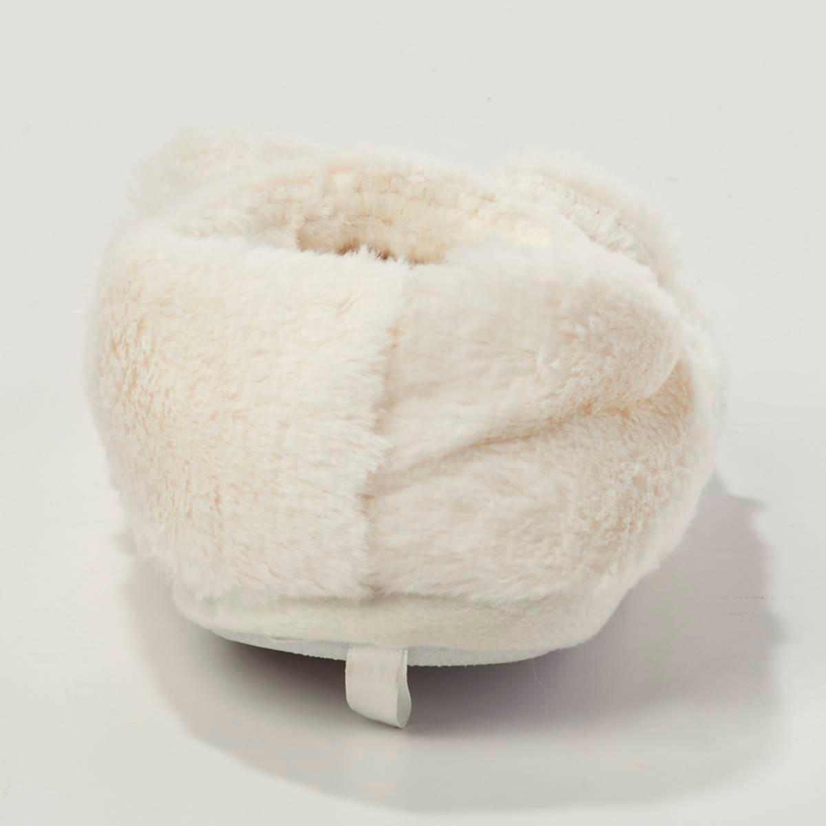 Description Let your feet relax in cozy comfort with these Womens Capelli New York faux fur and soft boa moccasin slippers. These indoor slippers include embroidery, 3D ear, and...