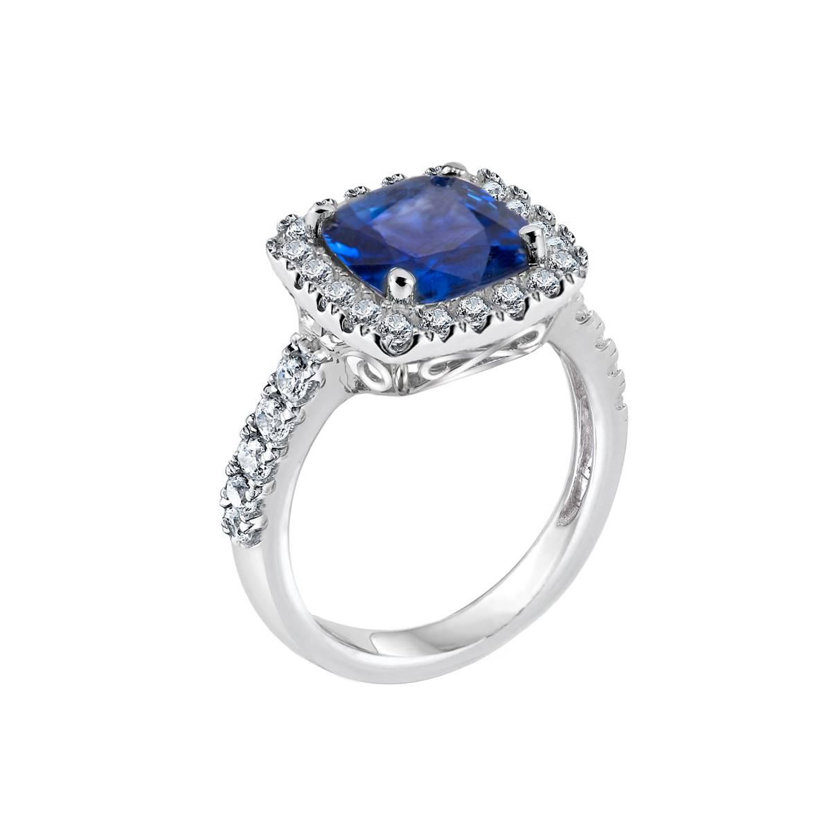 Description Gemstone Classics™ beautiful large cushion shaped ring features a created blue sapphire gemstone that is surrounded by a halo of created white sapphire. Material:...
