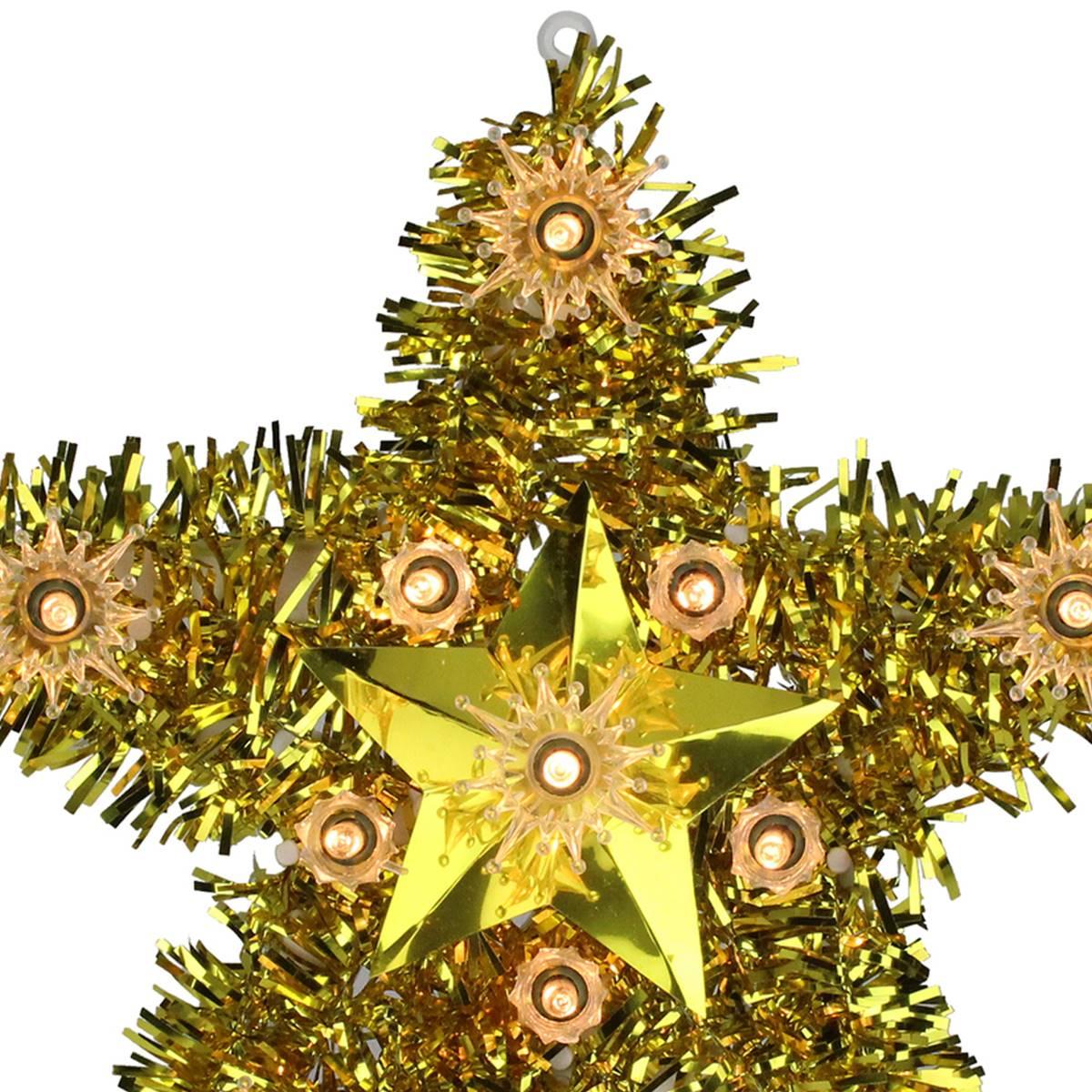 Description This retro Northlight Seasonal Gold Star Christmas Tree Topper screams nostalgia with its gold tinsel border. Clear lights offer a warm candle-like glow to make your...