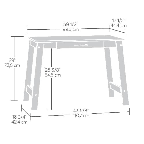 Sauder Beginnings writing table features a drawer with metal runners and safety stops. Please measure to make sure it will fit your space.