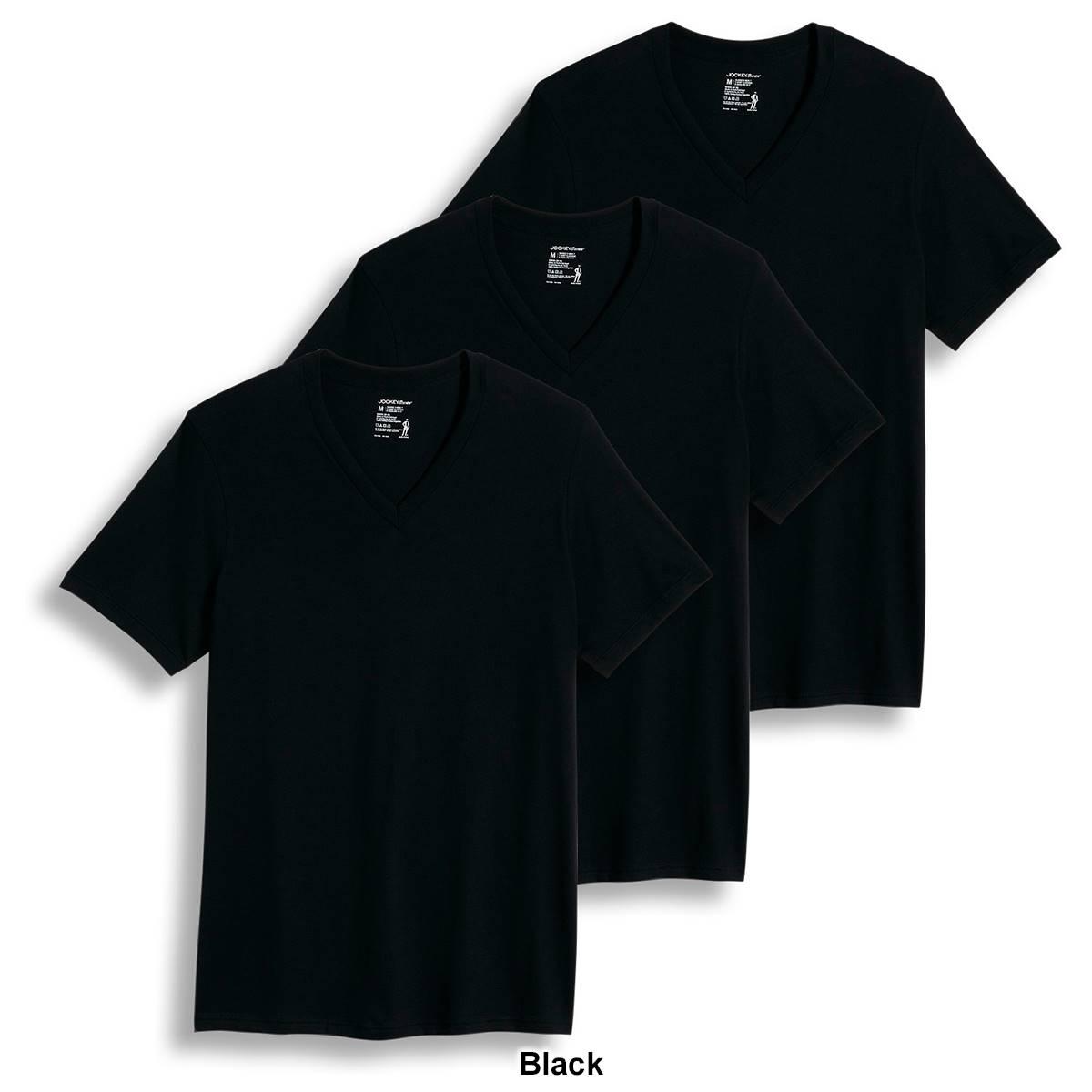 Description This Mens Jockey® 3-pack of v-neck t-shirts is a comfortable classic with a reinforced collar and sweat-wicking fabric. STAYNEW® technology reduces pilling and...