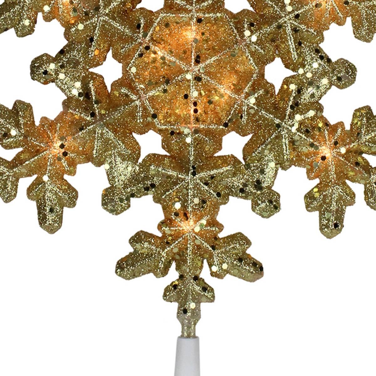 Description Light up your holiday decor with this gorgeous Northlight Seasonal Gold Snowflake Christmas Tree Topper. The clear lights illuminate not only the star itself but cast...