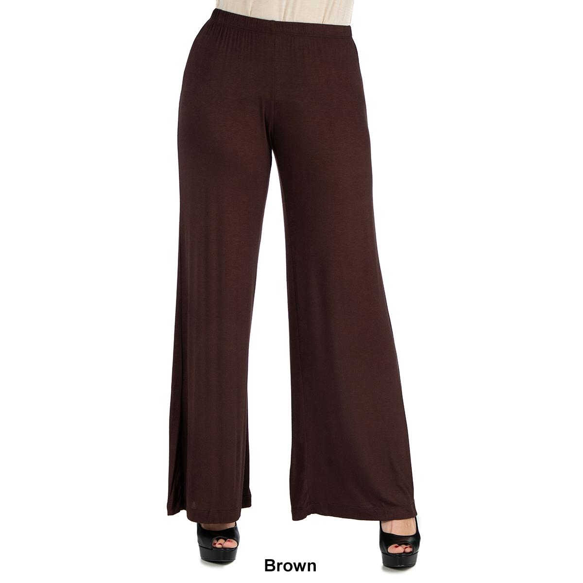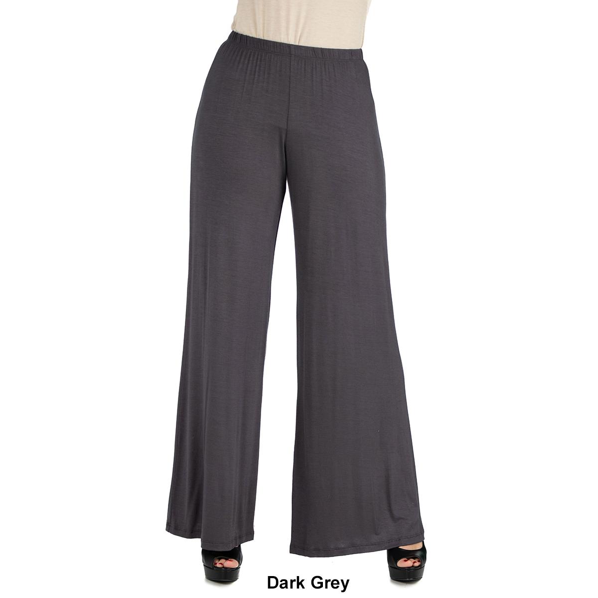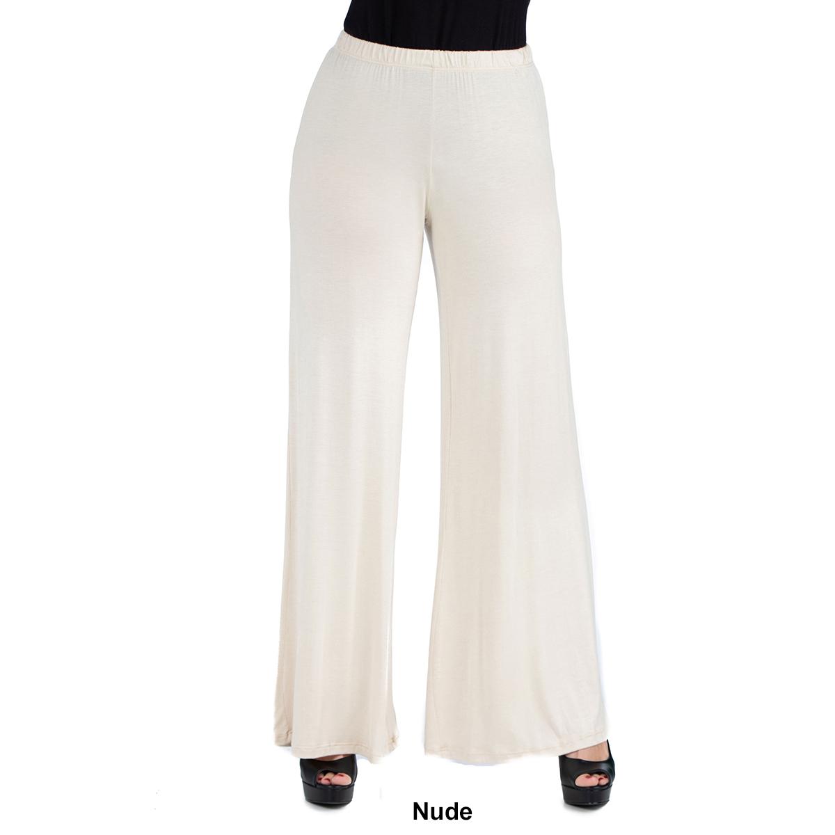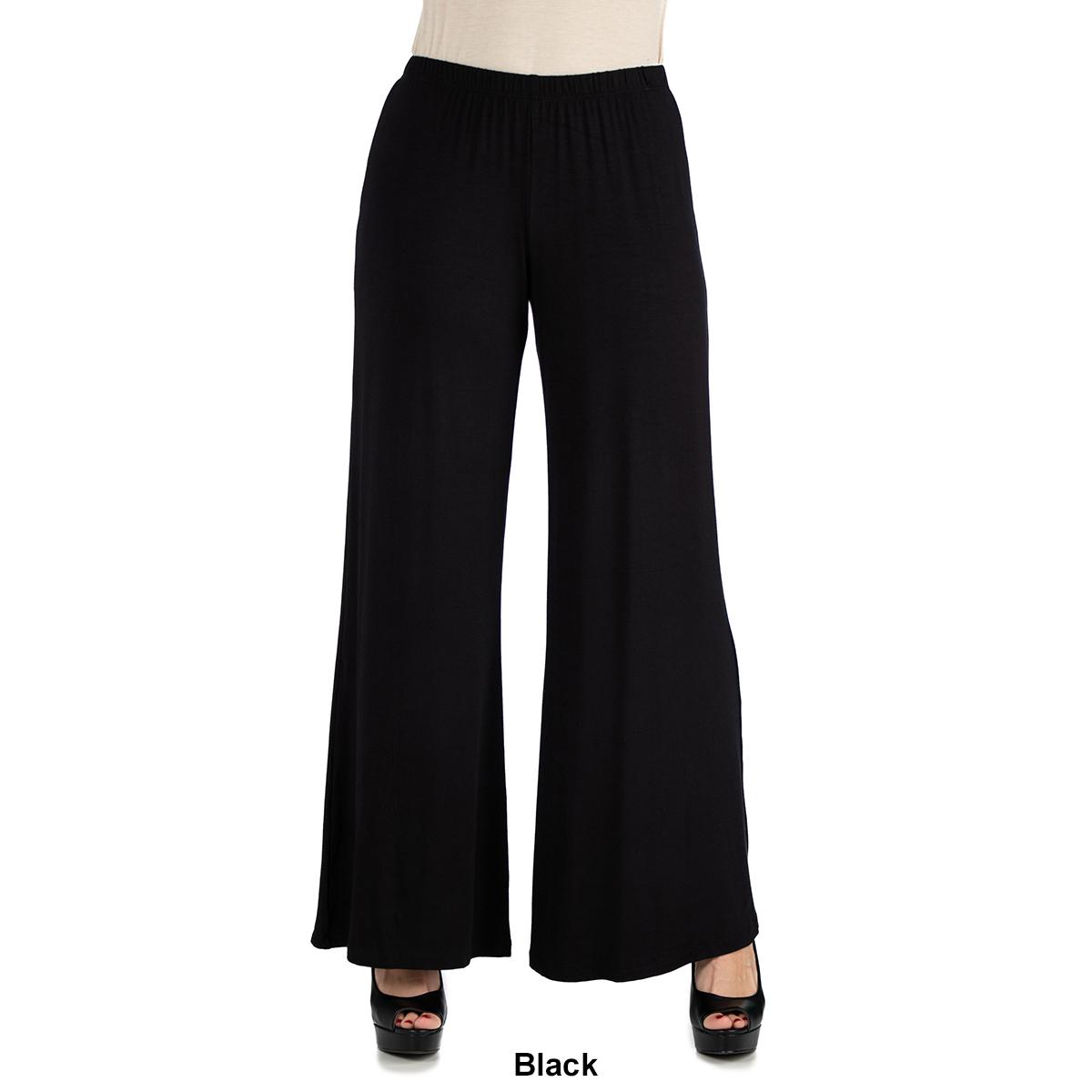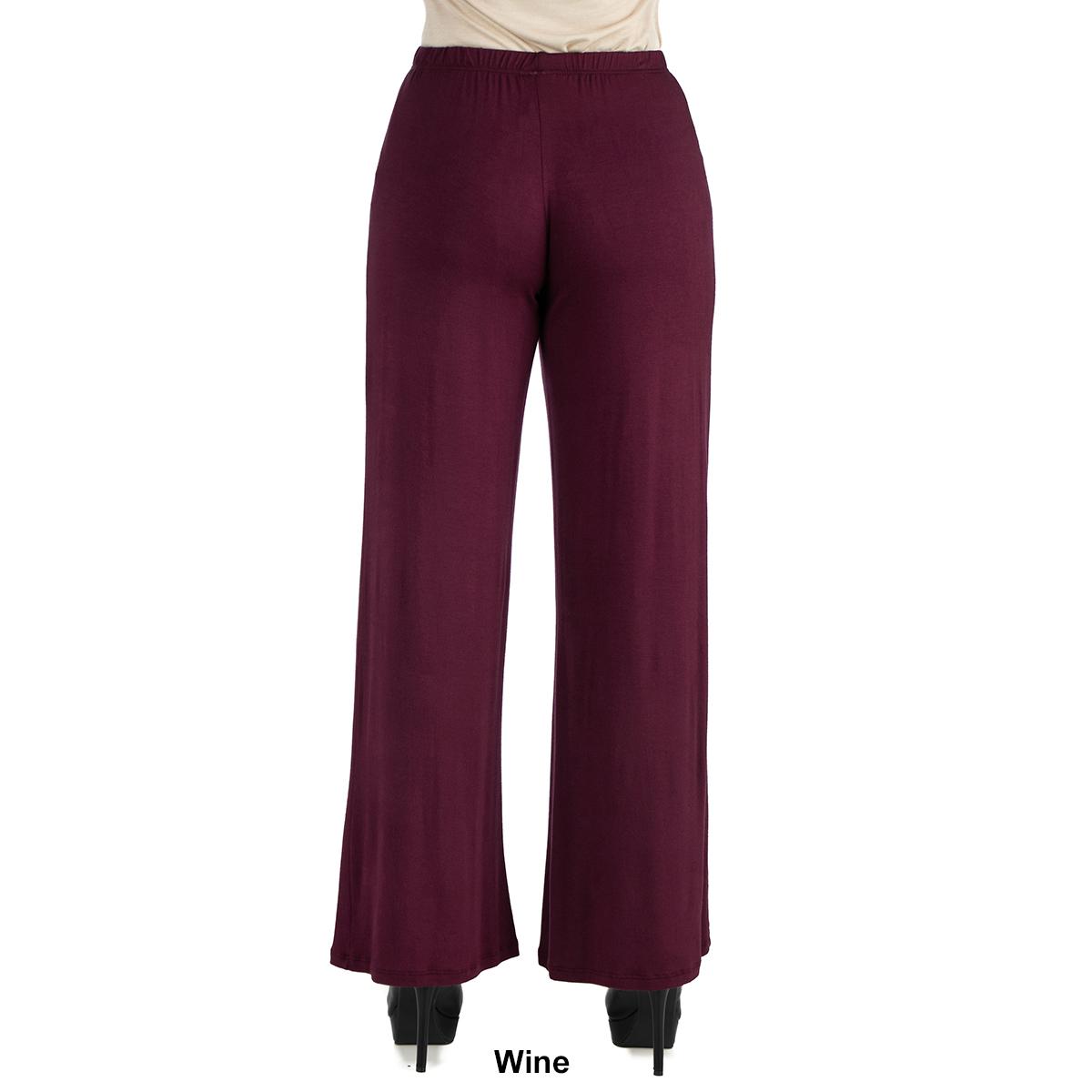 These comfortable Womens 24/7 Comfort Apparel palazzo pants feature an elastic waist, stretch material, flared pant legs, and a relaxed fit. Made from a comfortable stretch material these pants will be your favorite new pair.