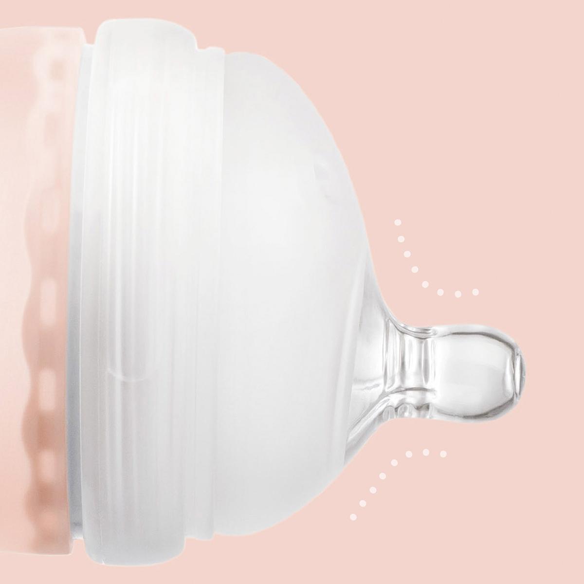 ‥ Nipple design mimics natural breasts; allows for easy latching and reduces bottle rejection.‥ Integrated dual-venting anti-colic system limits air ingestion.‥ Off-centered nipple allows continuous flow, upright feeding, and minimizes leftover liquid.‥ 100% Non-toxic medical grade silicone, BPA, PVC, Phthalate free and dishwasher safe.‥ Smooth texture makes it easy to hold and a wide neck for easy cleaning.‥ O-3 month bottle comes with a slow flow nipple. ‥ 3 month+ bottle comes with a medium flow nipple.‥ 4 sizes of replacement nipples are available: slow flow 0-3 month, medium flow 3-6 month, fast flow 6 month+, X cut for thicker liquids 6 month+.‥ Award winning product.