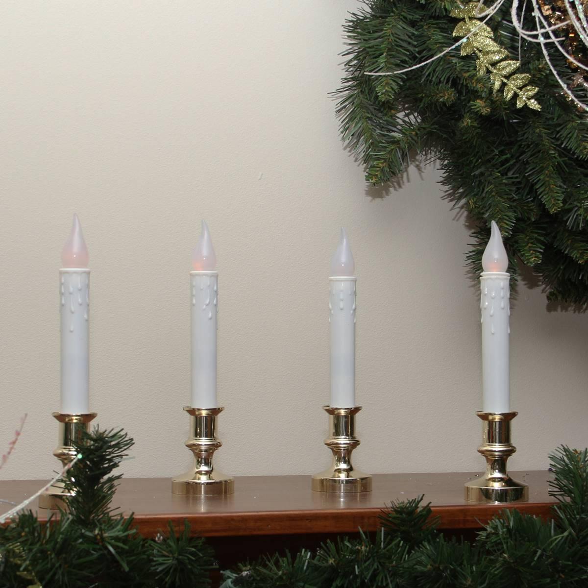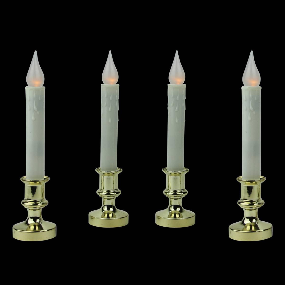 Add some light to your life with these beautiful Northlight Seasonal set of 4 LED flickering window Christmas candle lamps. The easy glow is sure to bring some sparkle to your Christmas decor. These universal lights can also be used in a window sill, in a bedroom, to light your date nights and many other options. Featuring a brass base, frosted LED C5 bulb that steadily burns. Battery operated, each candle lamp requires 2 ´AA´ batteries, not included, and an automatic timer with 8 hours on and 16 hours off. Twist the bulb to turn on and off.