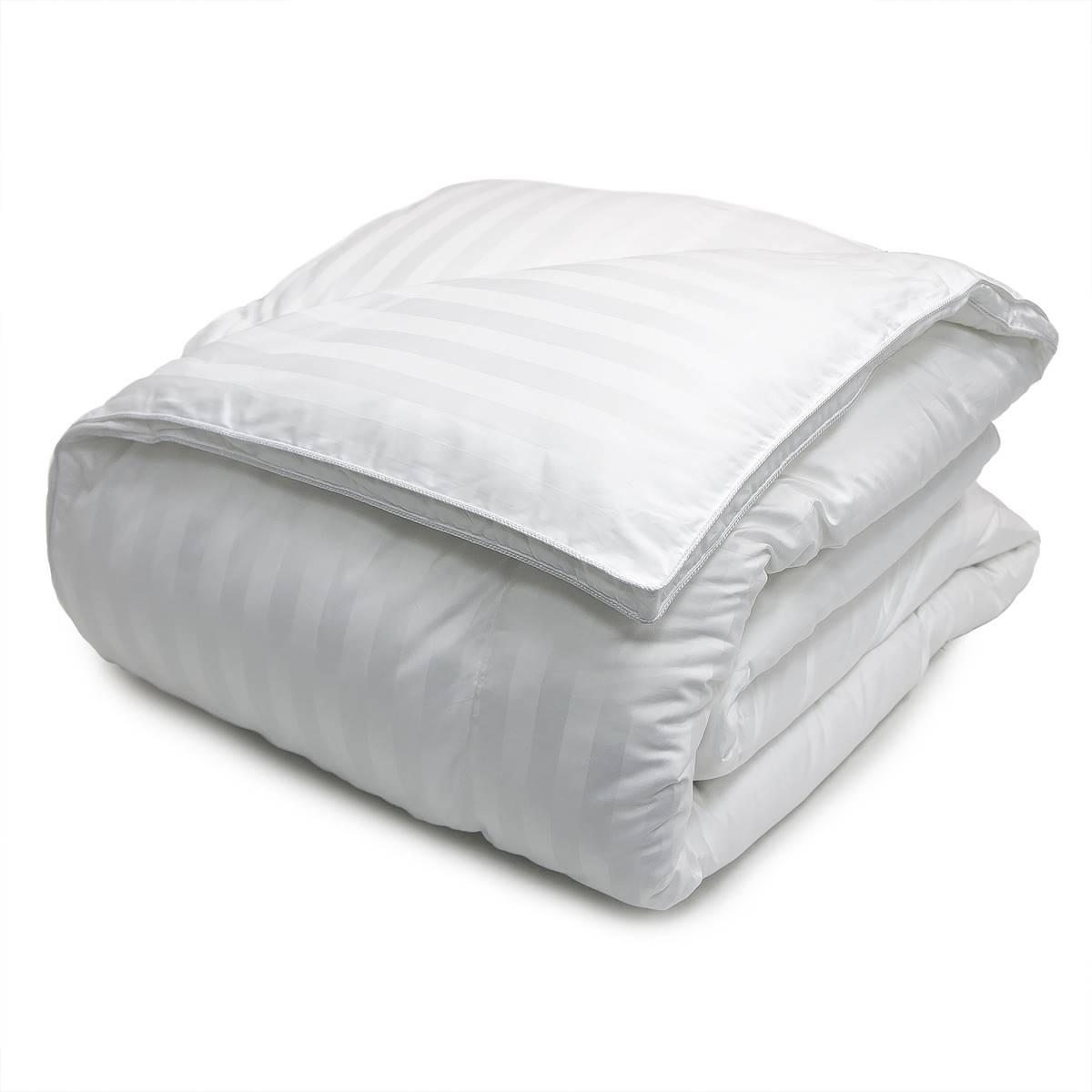 Curl up with just the right amount of warmth with this Blue Ridge Home Fashions 350 thread count down alternative comforter. It features a box stitch construction to keep the hypoallergenic polyester fill from shifting. The comforter is machine washable but dry clean recommended and comes in a stripe pattern that will go great with another décor in your room.