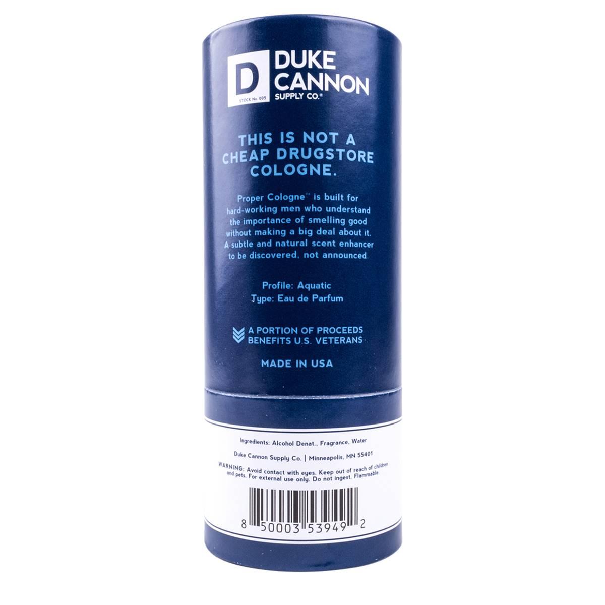 Description Duke Cannon Proper Huron Cologne. A subtle and natural scent enhancer to be discovered, not announced. Proper Cologne is built for hard-working men who understand the...