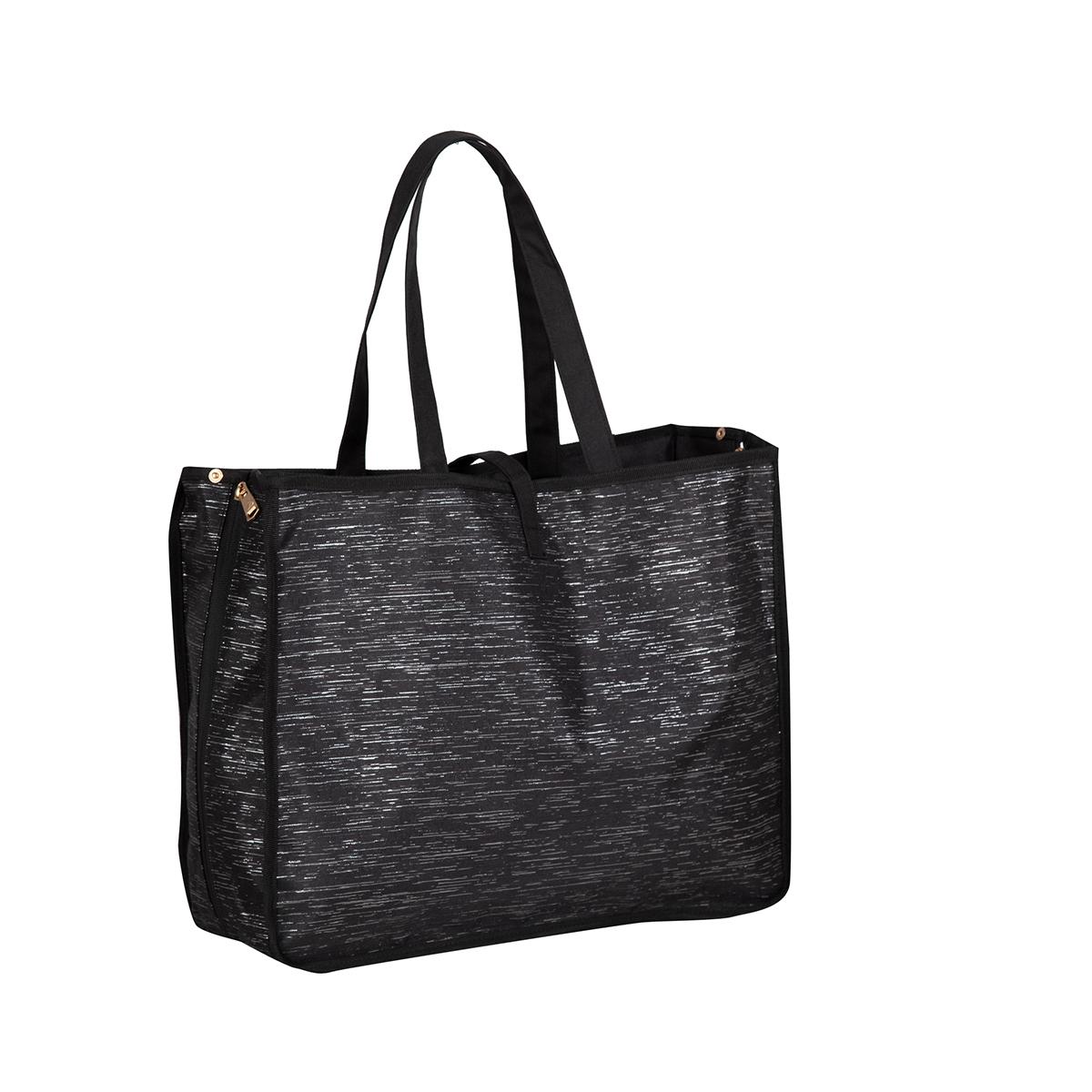 This Jenni Chan Broadway reversible carry-all tote is the ultimate go-to bag for travel or daily use. It is the perfect combo of fashion and functionality. Featuring 2 large zippered compartments to help keep your belongings secure and 2 shoulder straps for easy handling. Just flip and zip to reverse the pattern.