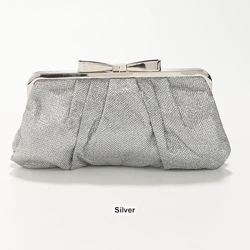 Description Sasha glitter frame clutch with bow features a shimmery exterior and removable chain strap. Dimensions: 6"H x 11"W x 3"D. Care: Spot Clean Material: Man Made Product...