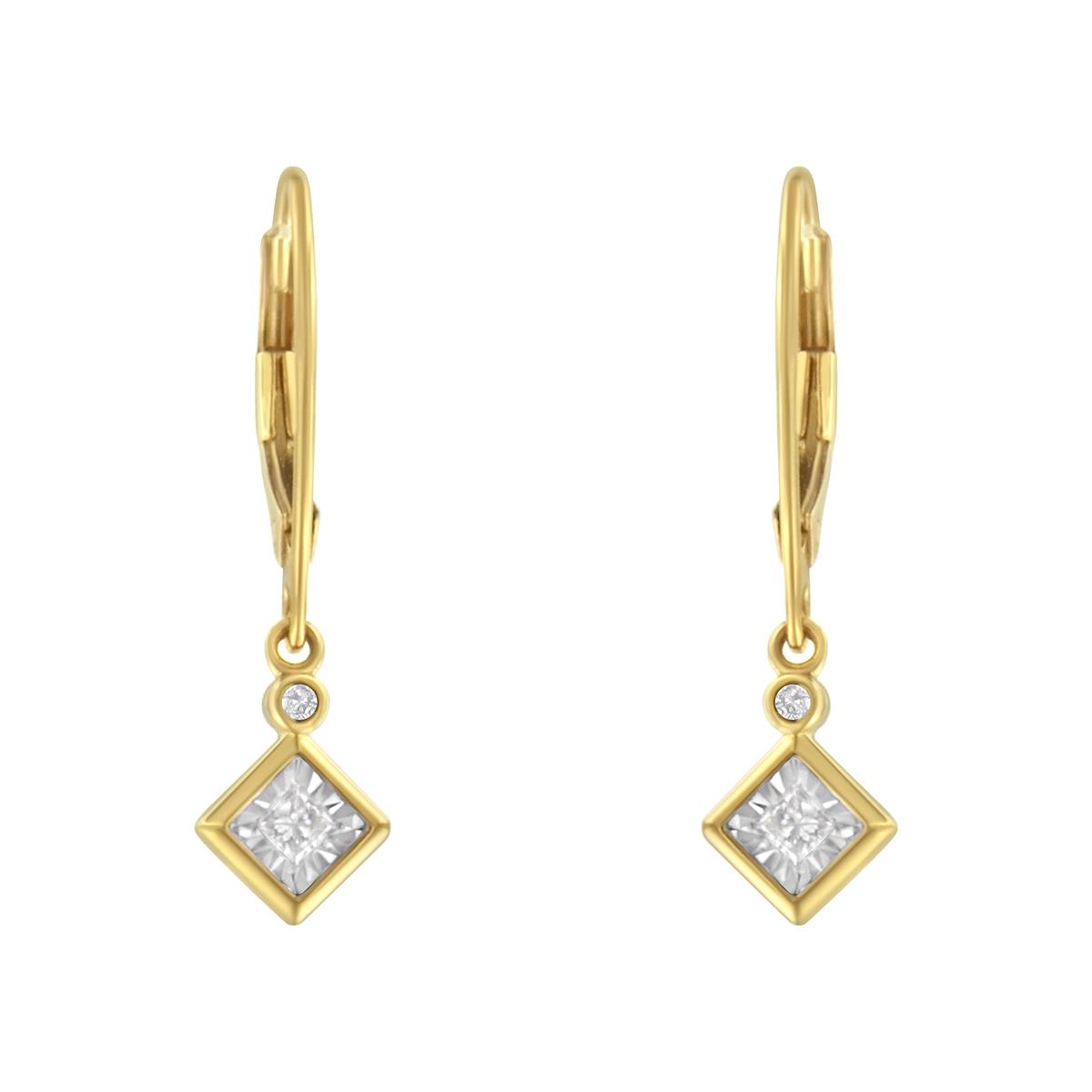 Description These lovely Diamond Classics™ Yellow Gold 1/3ctw. Dangle Earrings will make a beautiful gift for a loved one. A bezel-set round diamond sits on top of a miracle...