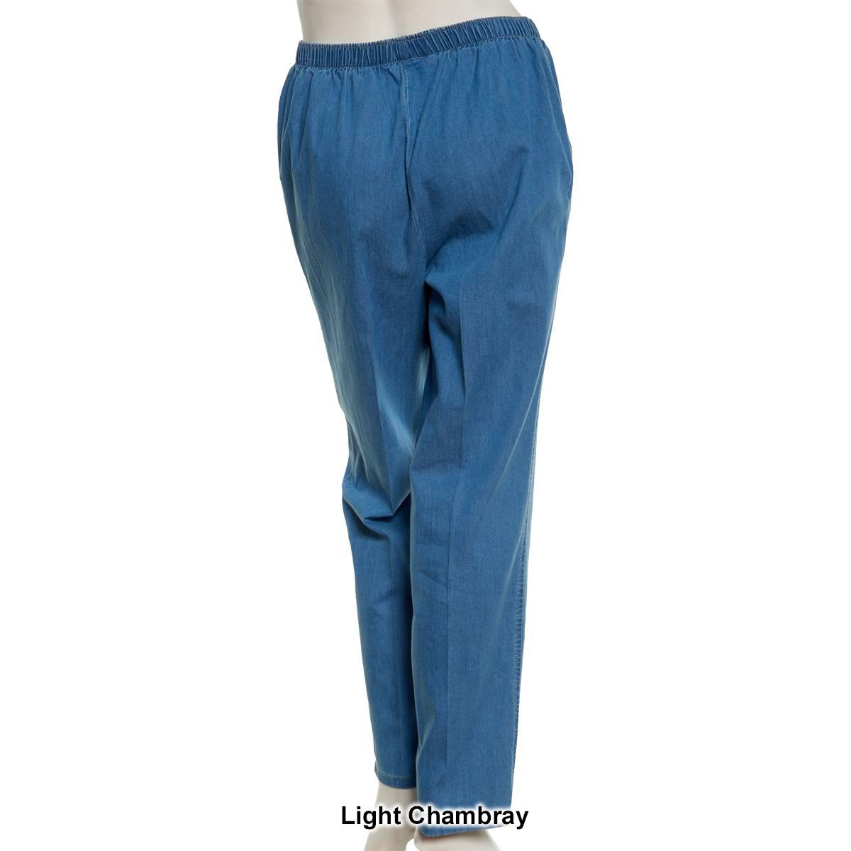 Be comfortable in your everyday look with styles that include these Petite Components pull-on denim-like pants with a elastic waist and faux front.