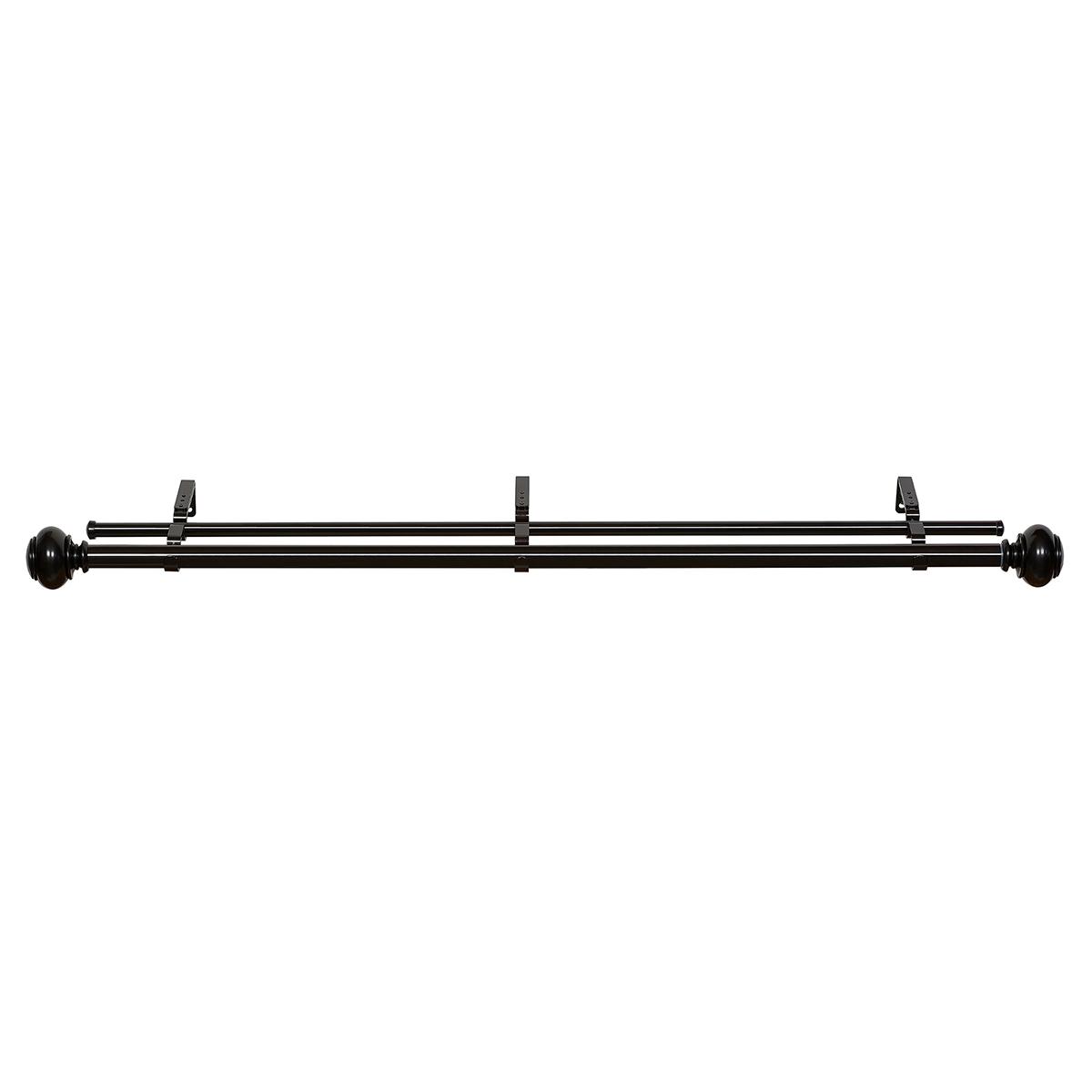 The Achim Brenner Buono II double decorative rod combines elegant taste, sophisticated styling, fine quality, and detailed craftsmanship. The elegant brown PVC finials add the perfect touch to any window. The double rods allow you to allow to layer your window treatments providing endless options. Both rods are made of metal and easily adjust telescopically to fit most windows.