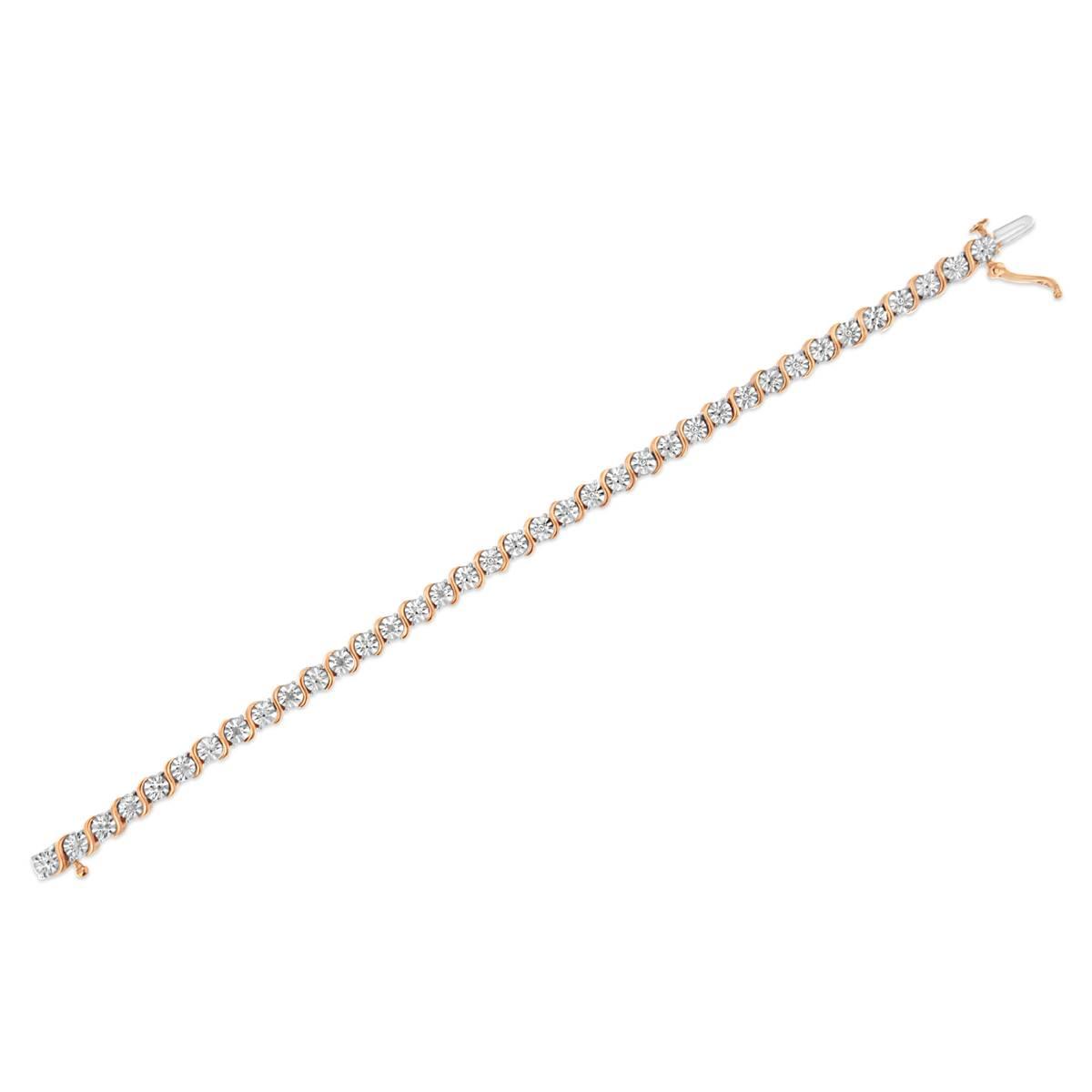 Adorn yourself with this Haus of Brilliance 14kt. rose gold plated tennis bracelet at any event for a touch of classic dazzle and elegance. This enticing bracelet features shimmering, natural diamonds - masterfully set to enhance size and sparkle - alternating with beaded links all amongst polished "S" shaped links. This is the perfect gift for you or someone else.