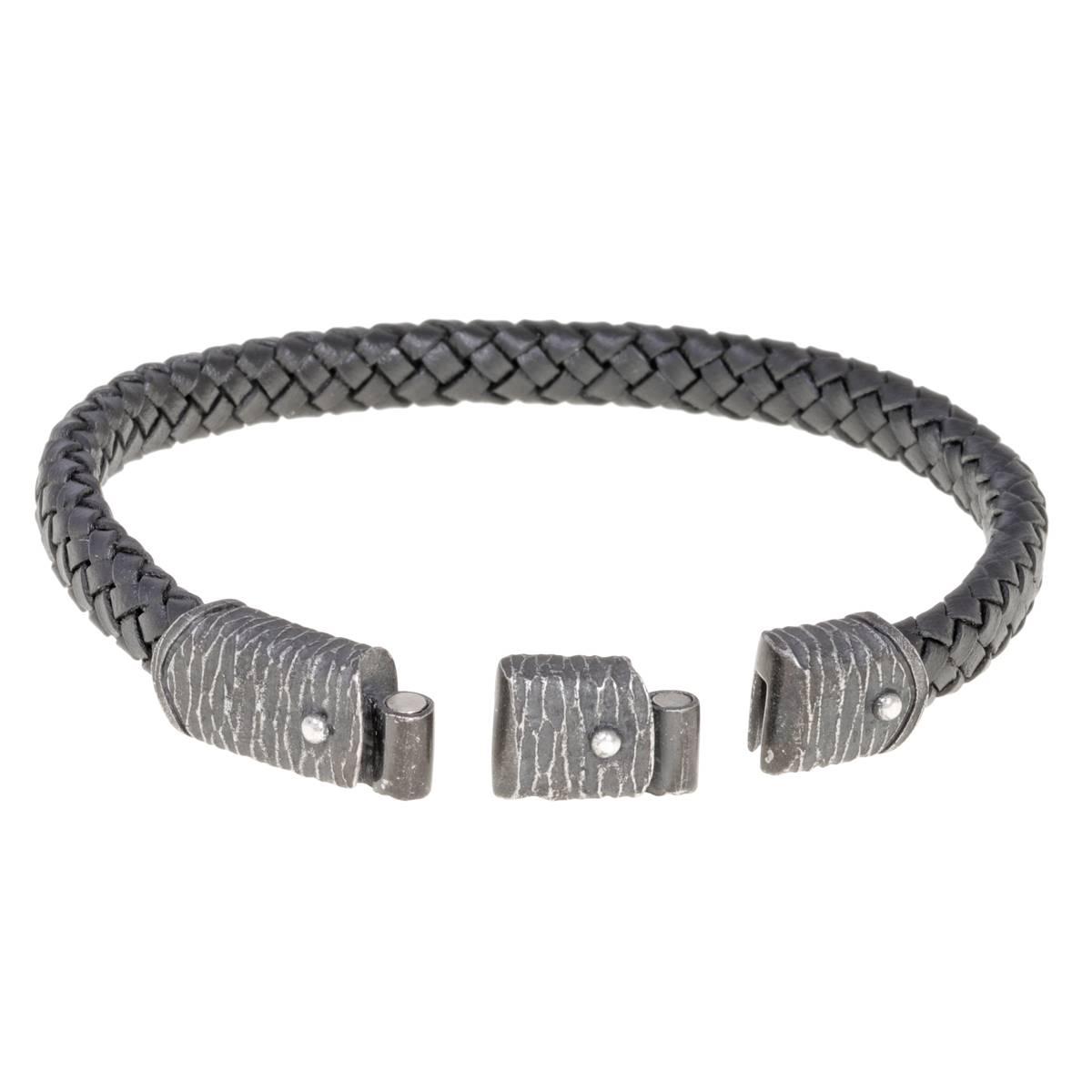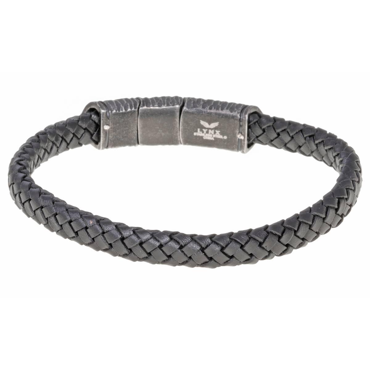 Description Strips of leather and stainless steel wire are woven together to craft this impressive Mens Lynx black braided leather bracelet. Stainless steel details complete the...