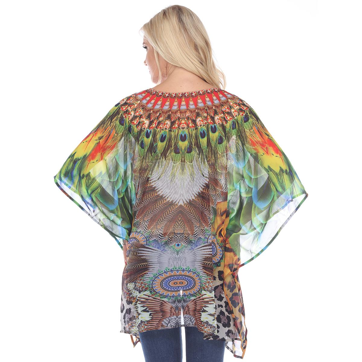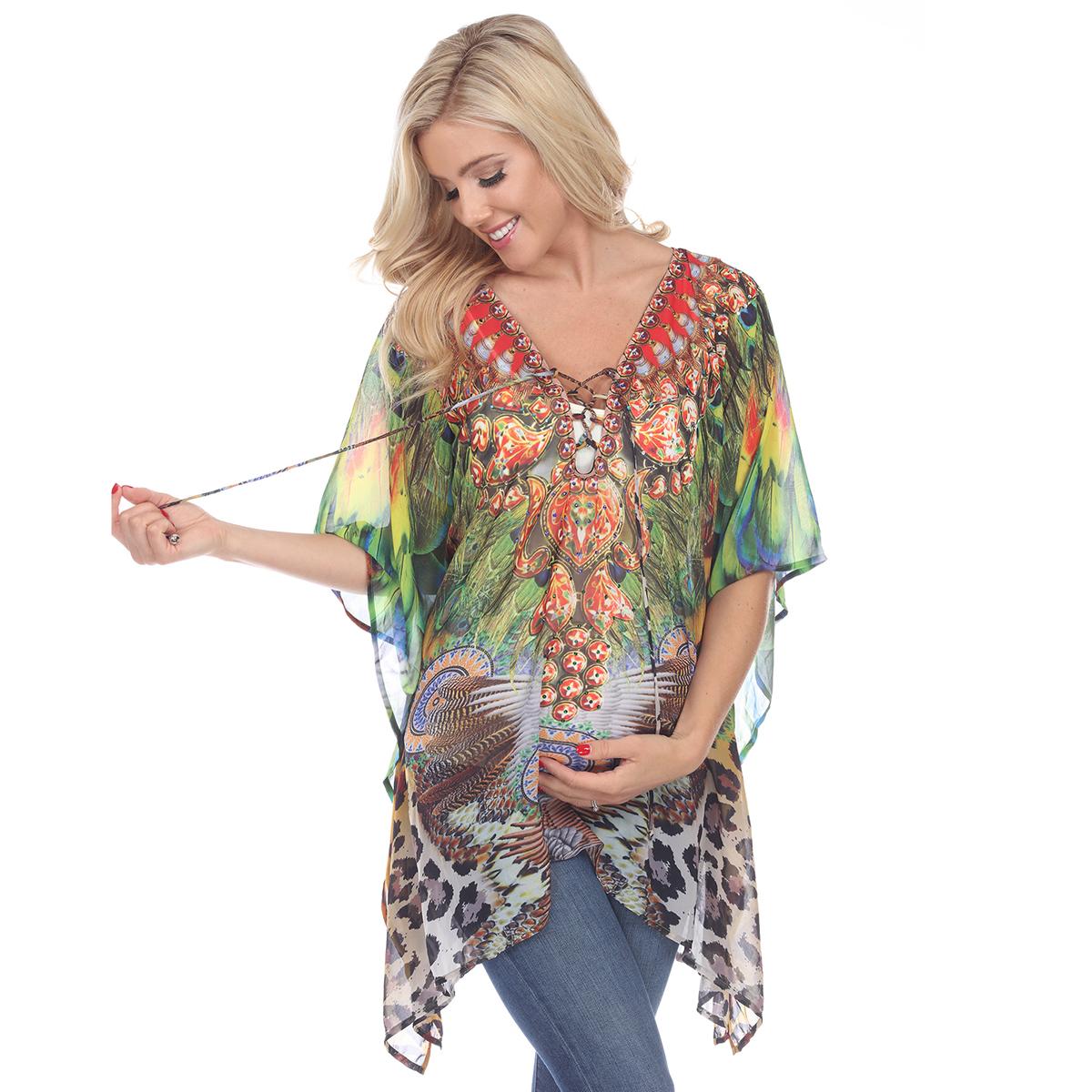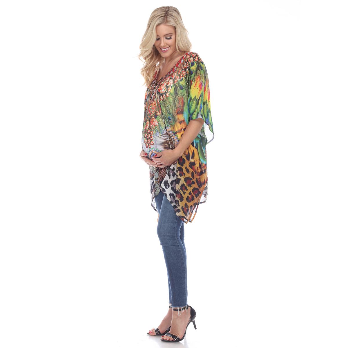 Feel confident and stylish in this Womens White Mark novelty print maternity poncho. A rich print sprinkled with sparkle trim and the criss-cross v neckline of this flowing top perfectly accents the sheer fabric.